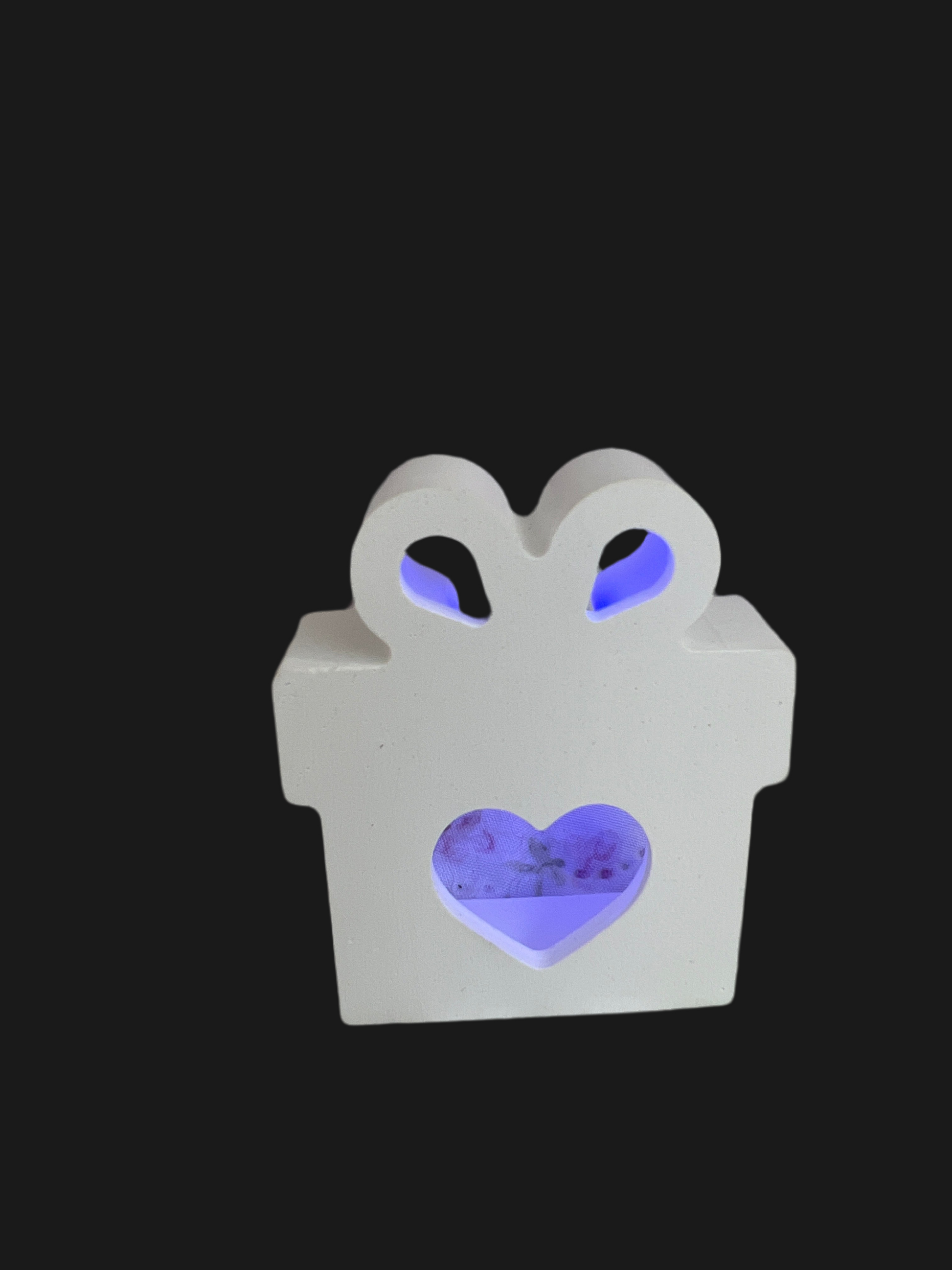 Deko Element „Geschenk“ *HERZ* mit LED-Ballonlicht in der Farbe blau handgefertigt aus Keramik