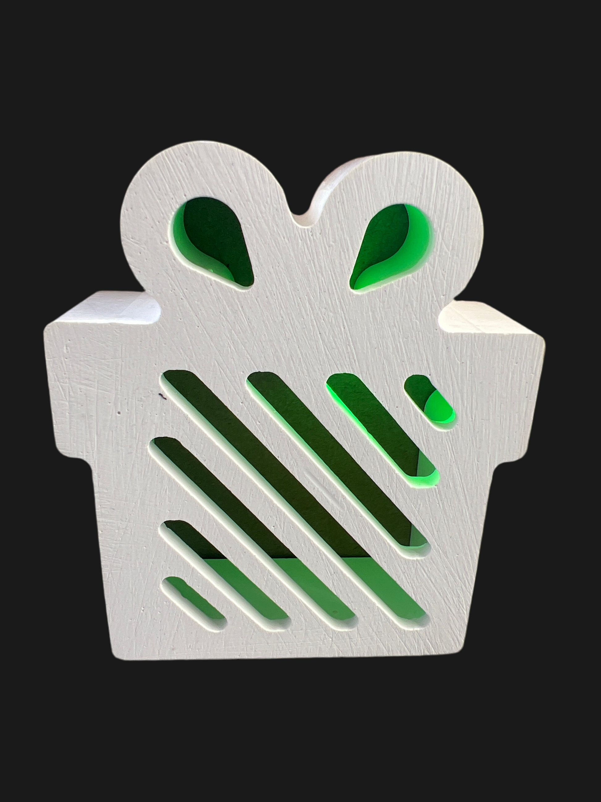 Deko Element „Geschenk“ *gestreift* mit LED-Ballonlicht in der Farbe grün