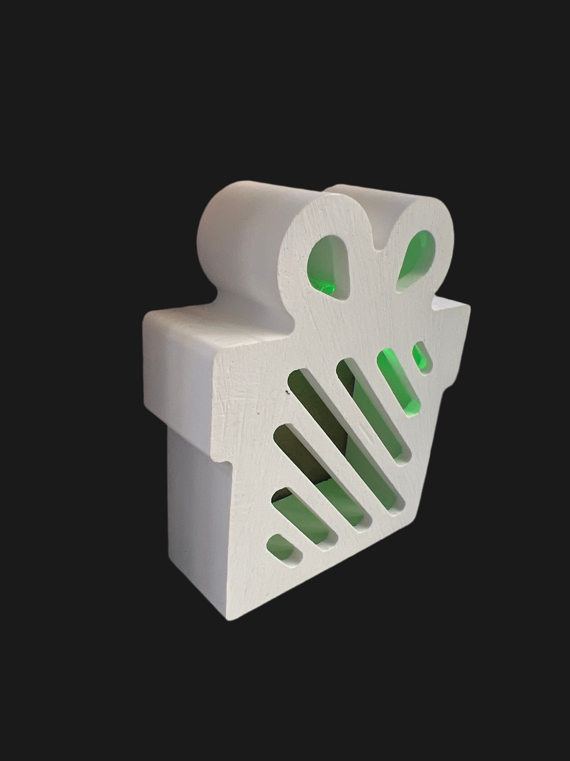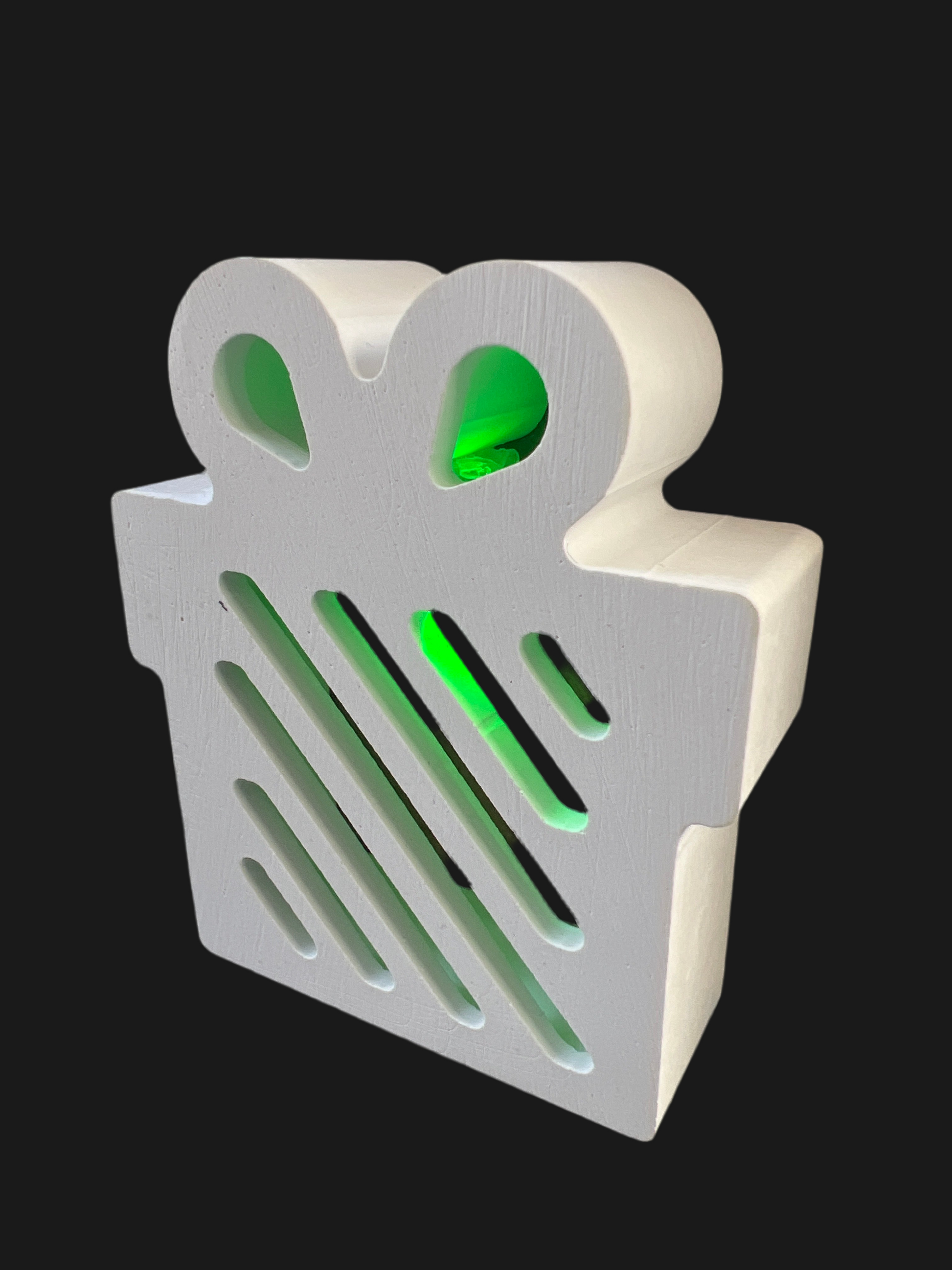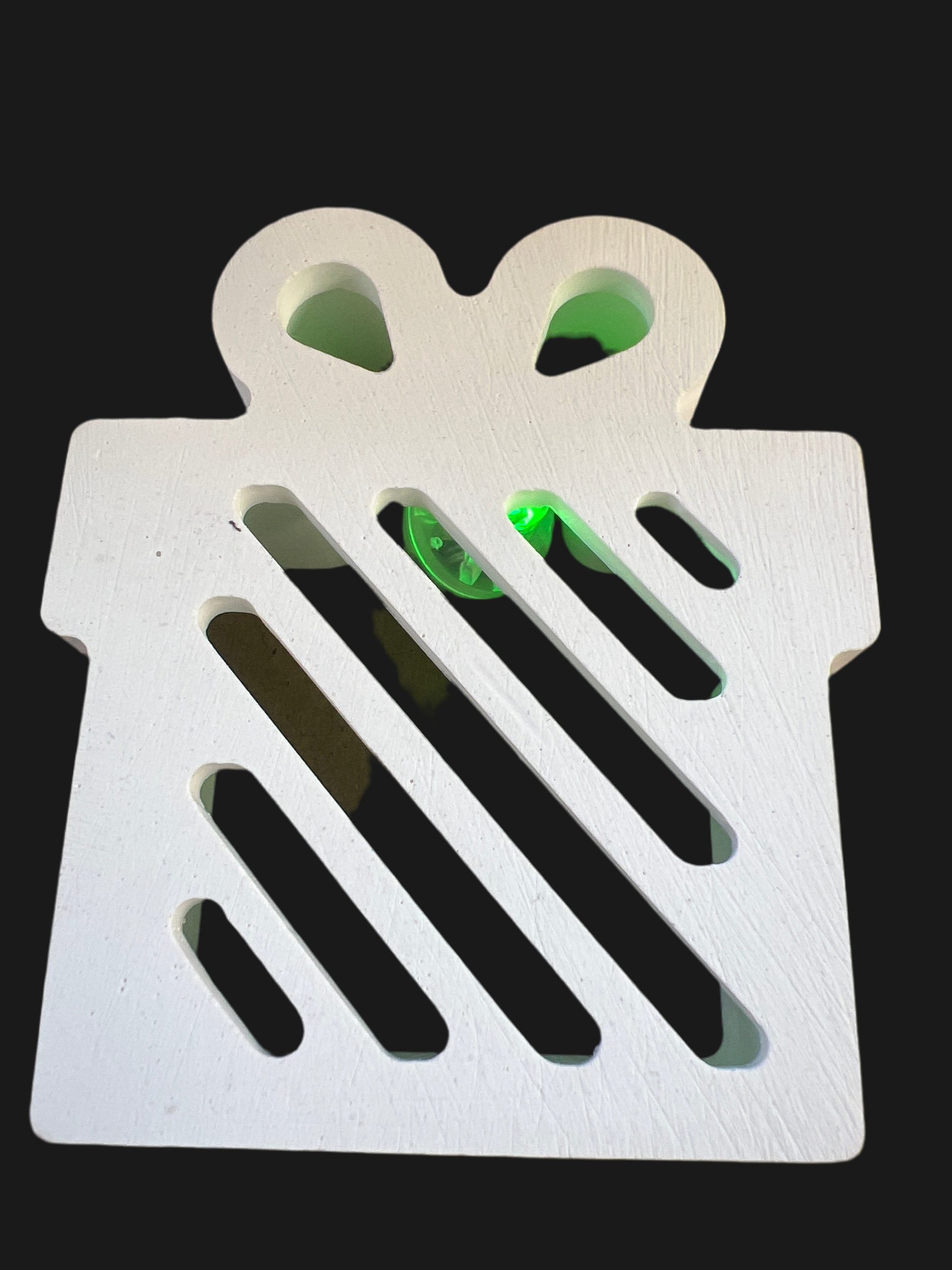 Deko Element „Geschenk“ *gestreift* mit LED-Ballonlicht in der Farbe grün handgefertigt aus Keramik