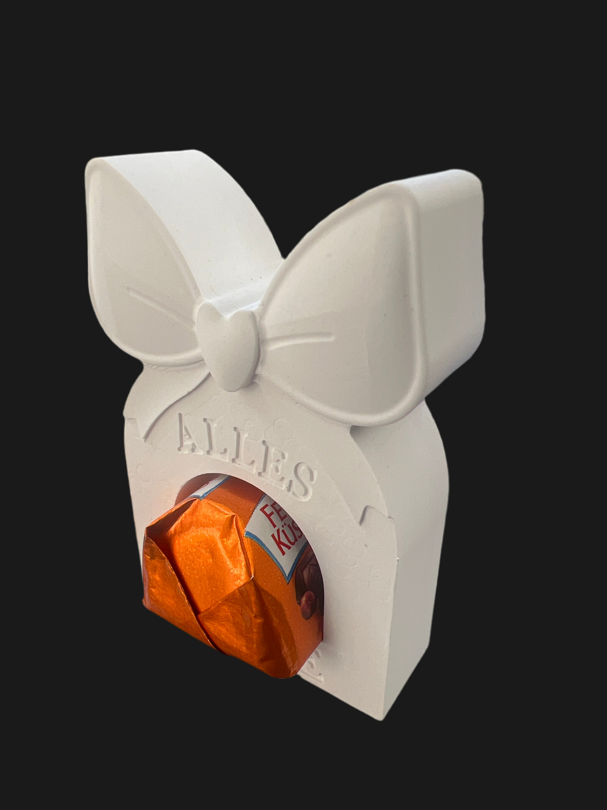 Deko Geschenk mit Schleife „Alles Gute“ mit Küsschen handgefertigt aus Keramik in der Farbe weiß