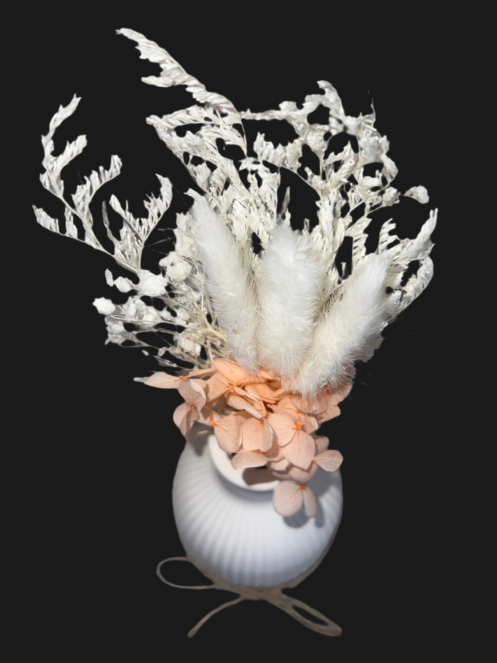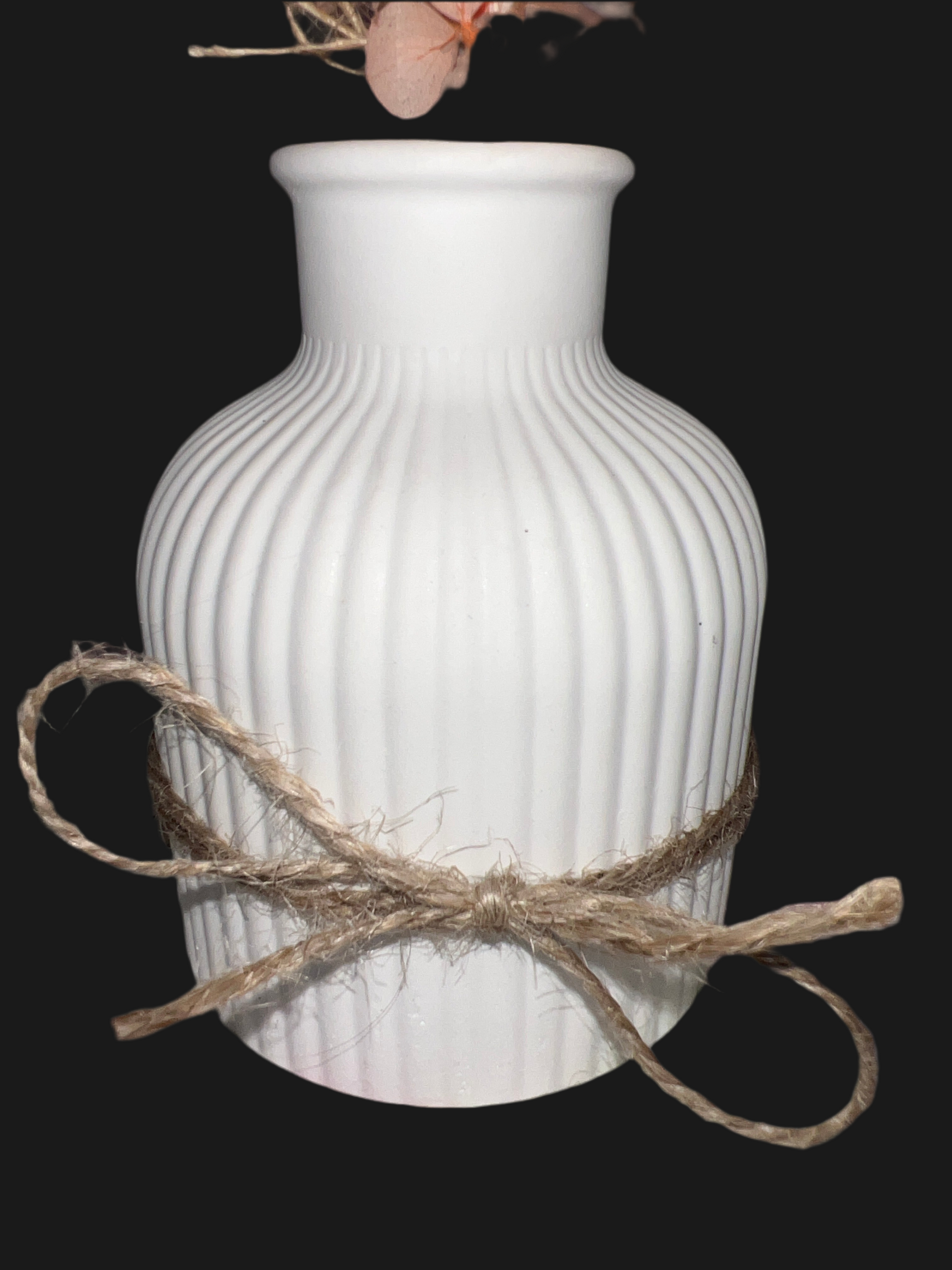DEKO VASE gestreift im der Farbe weiß mit Kunstblumenstrauß handgefertigt aus Keramik