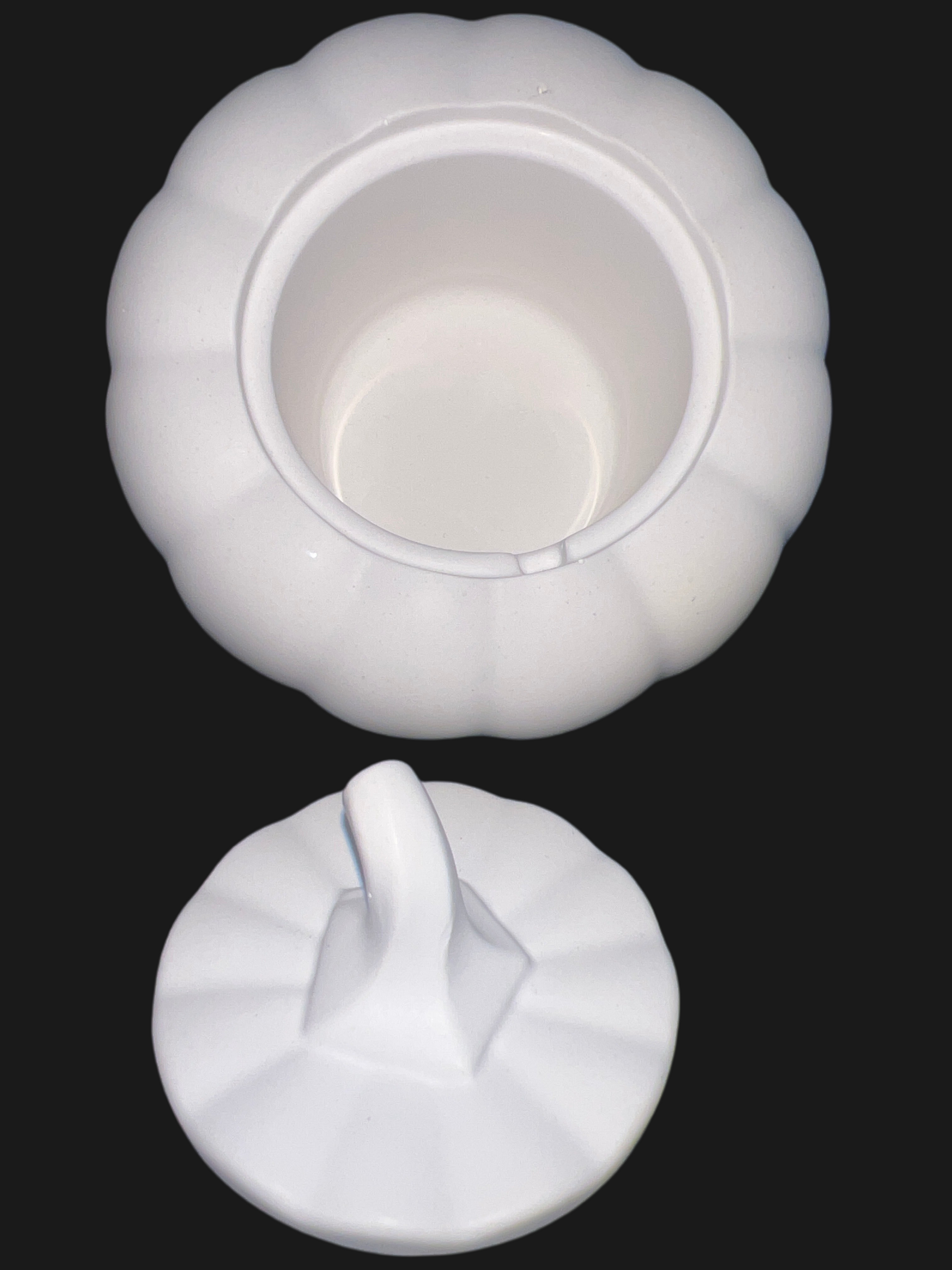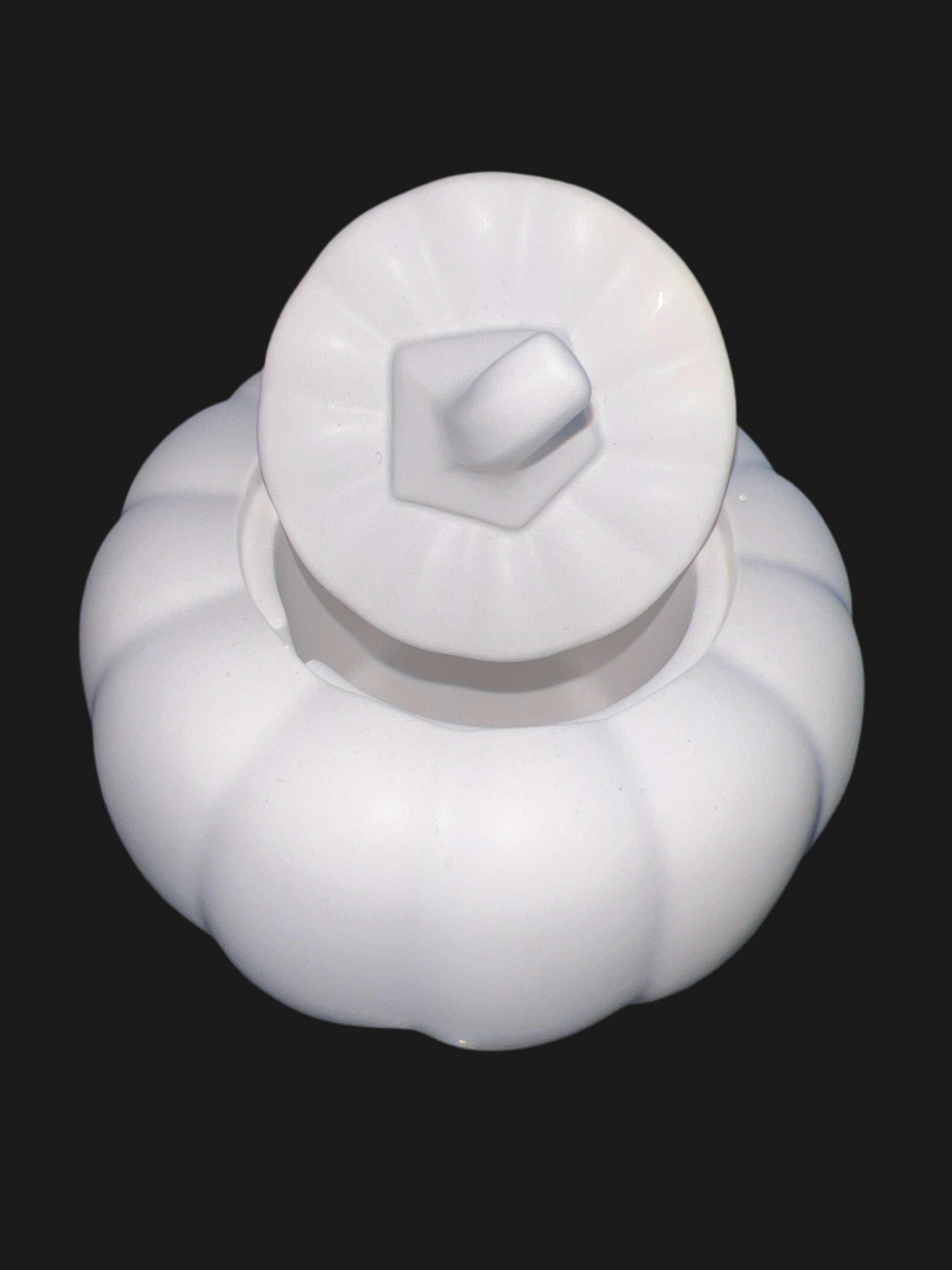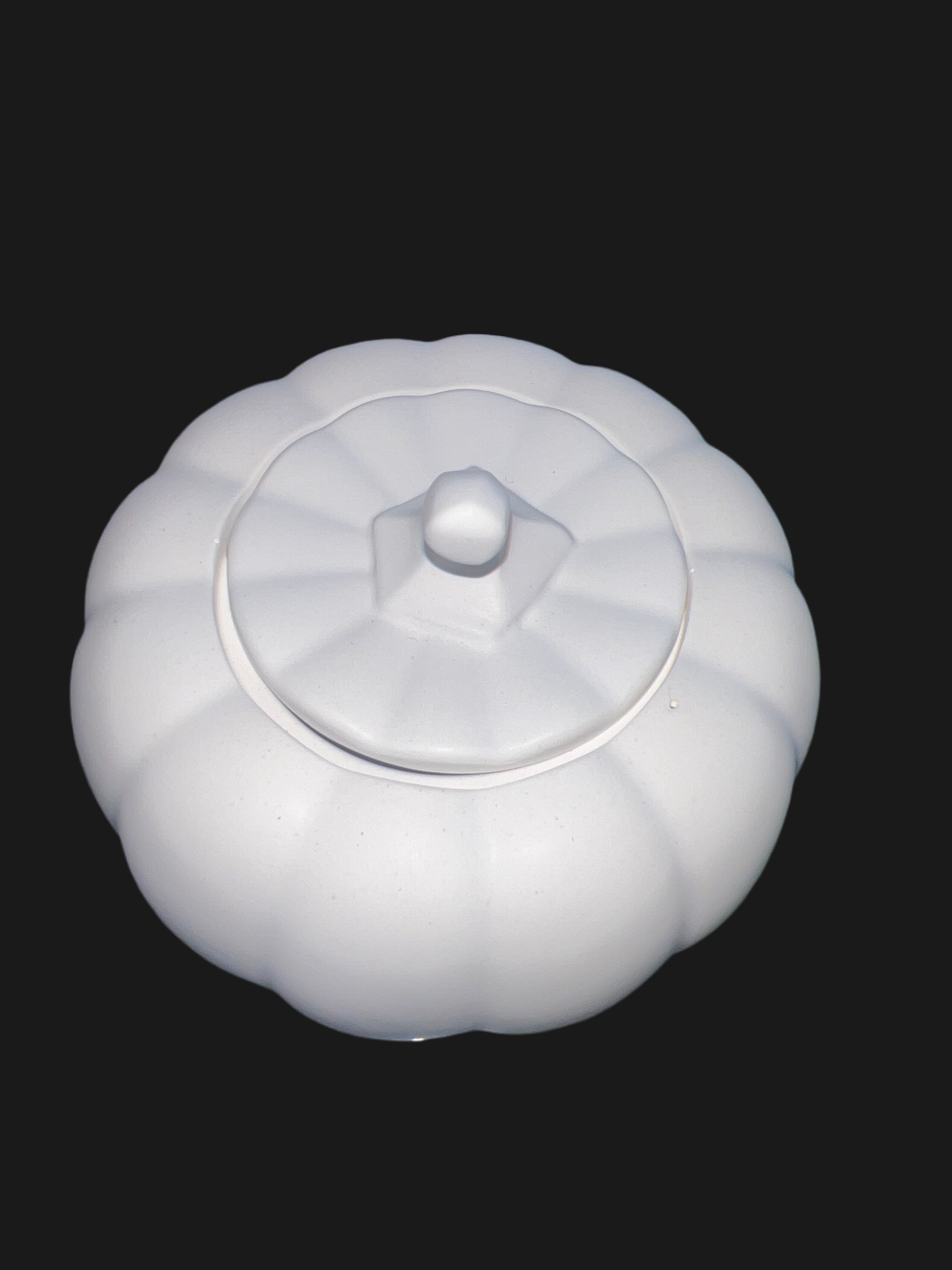 Dose groß & massiv „Kürbis“ aus Keramik handgefertigt in der Farbe weiß