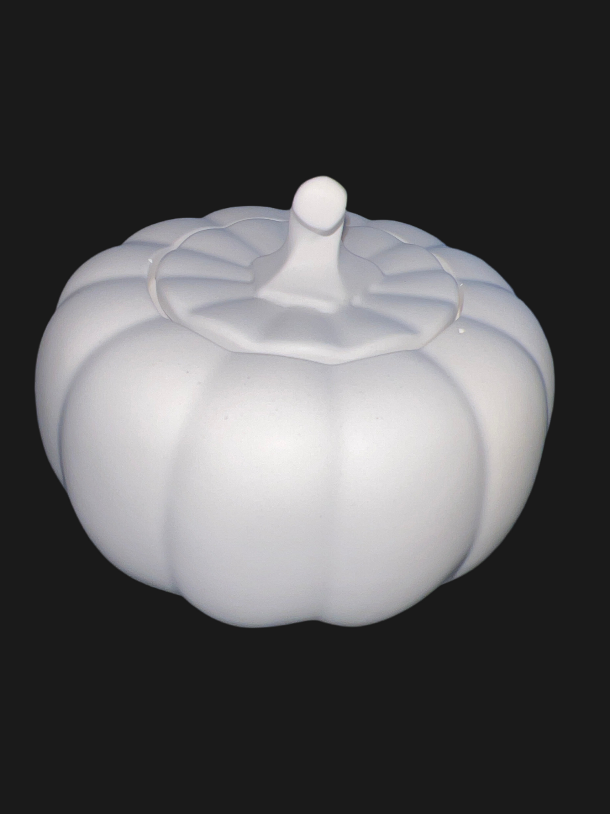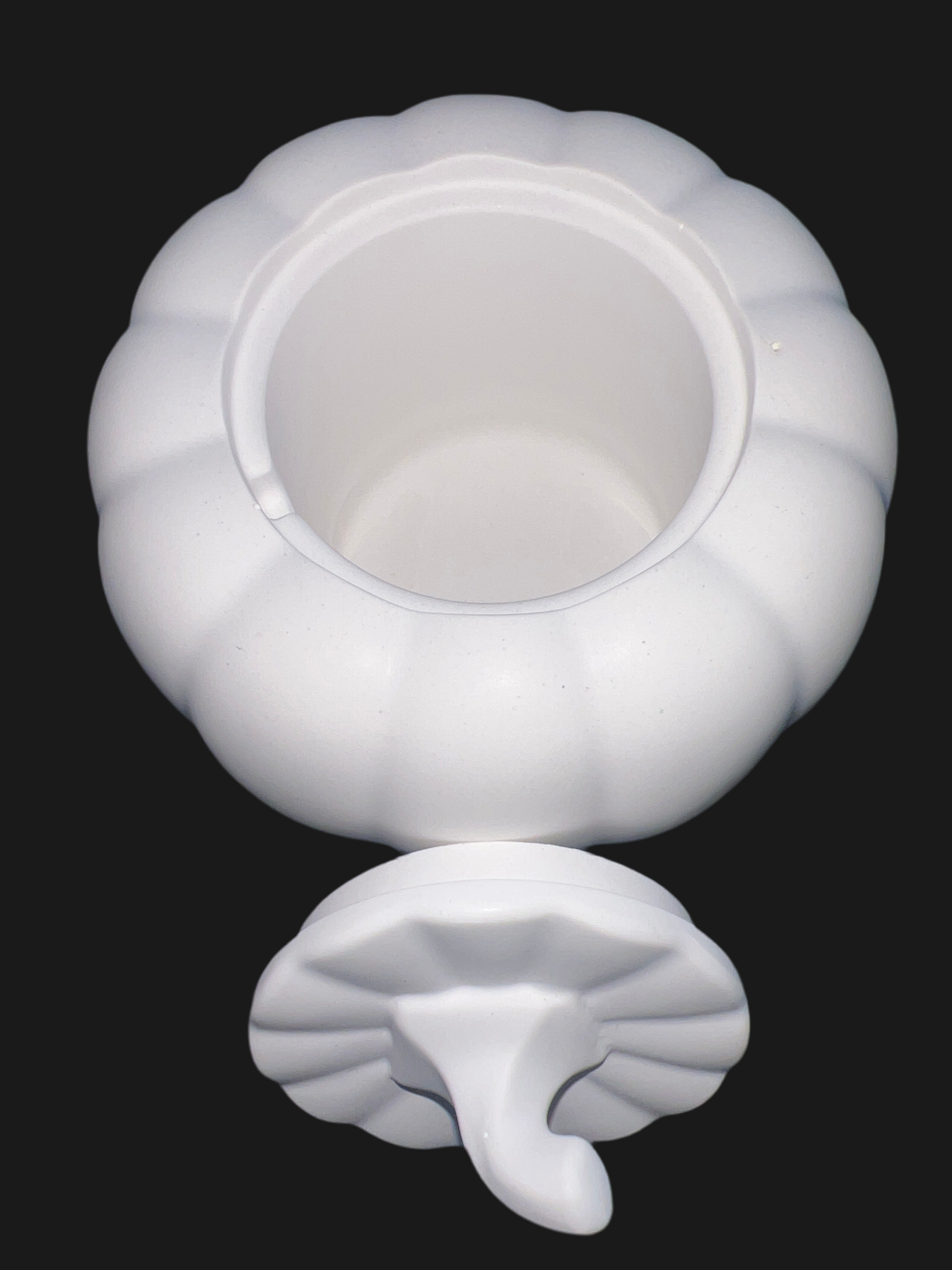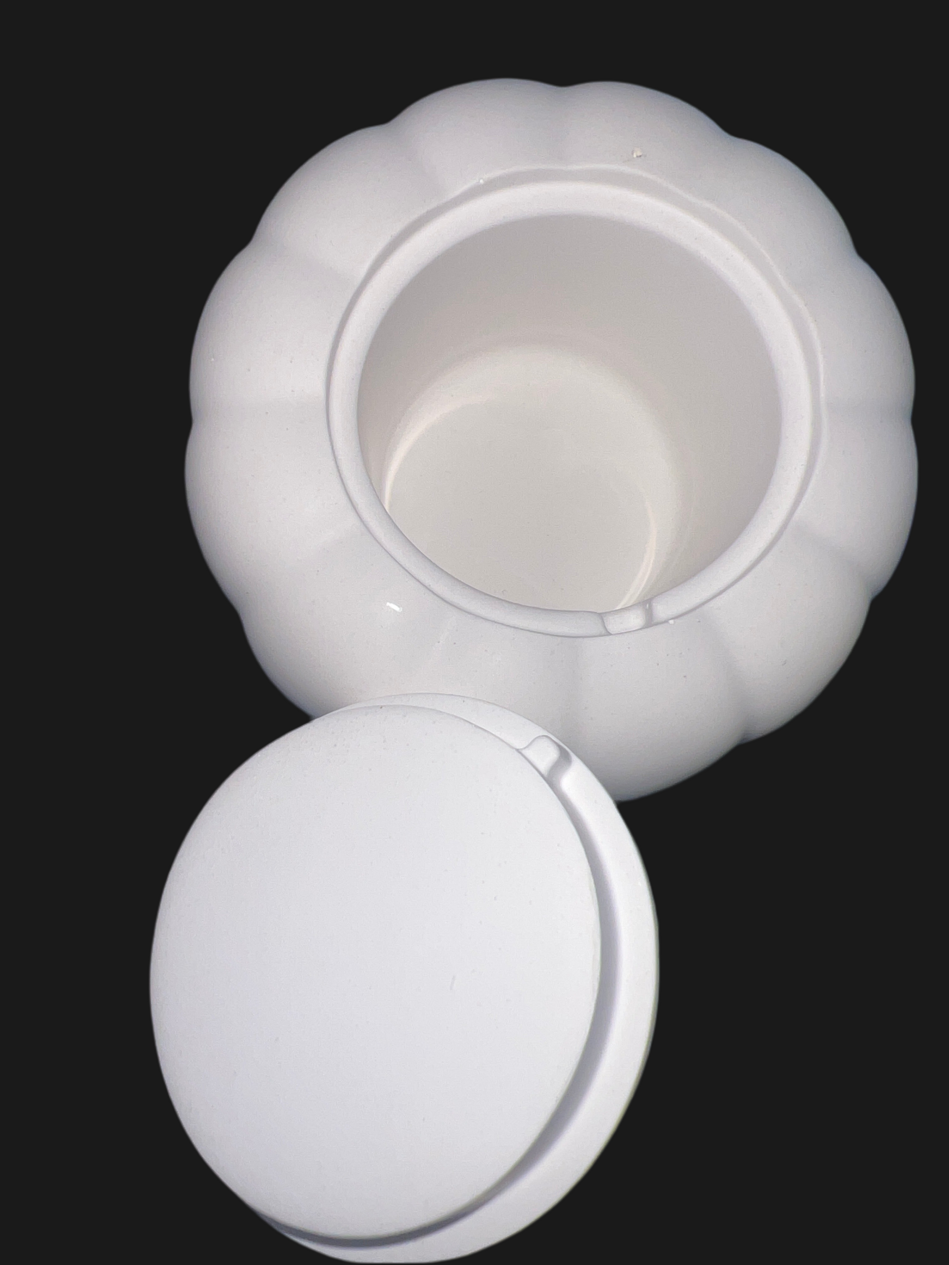 Dose groß & massiv „Kürbis“ aus Keramik handgefertigt in der Farbe weiß