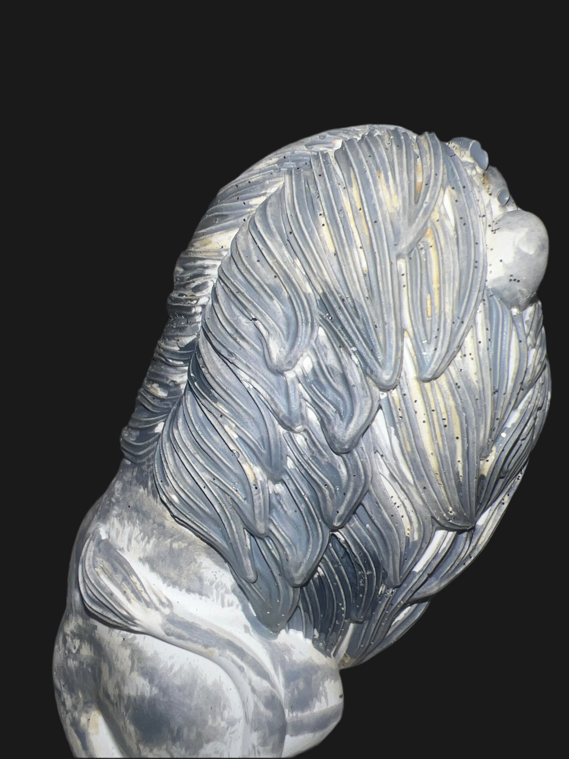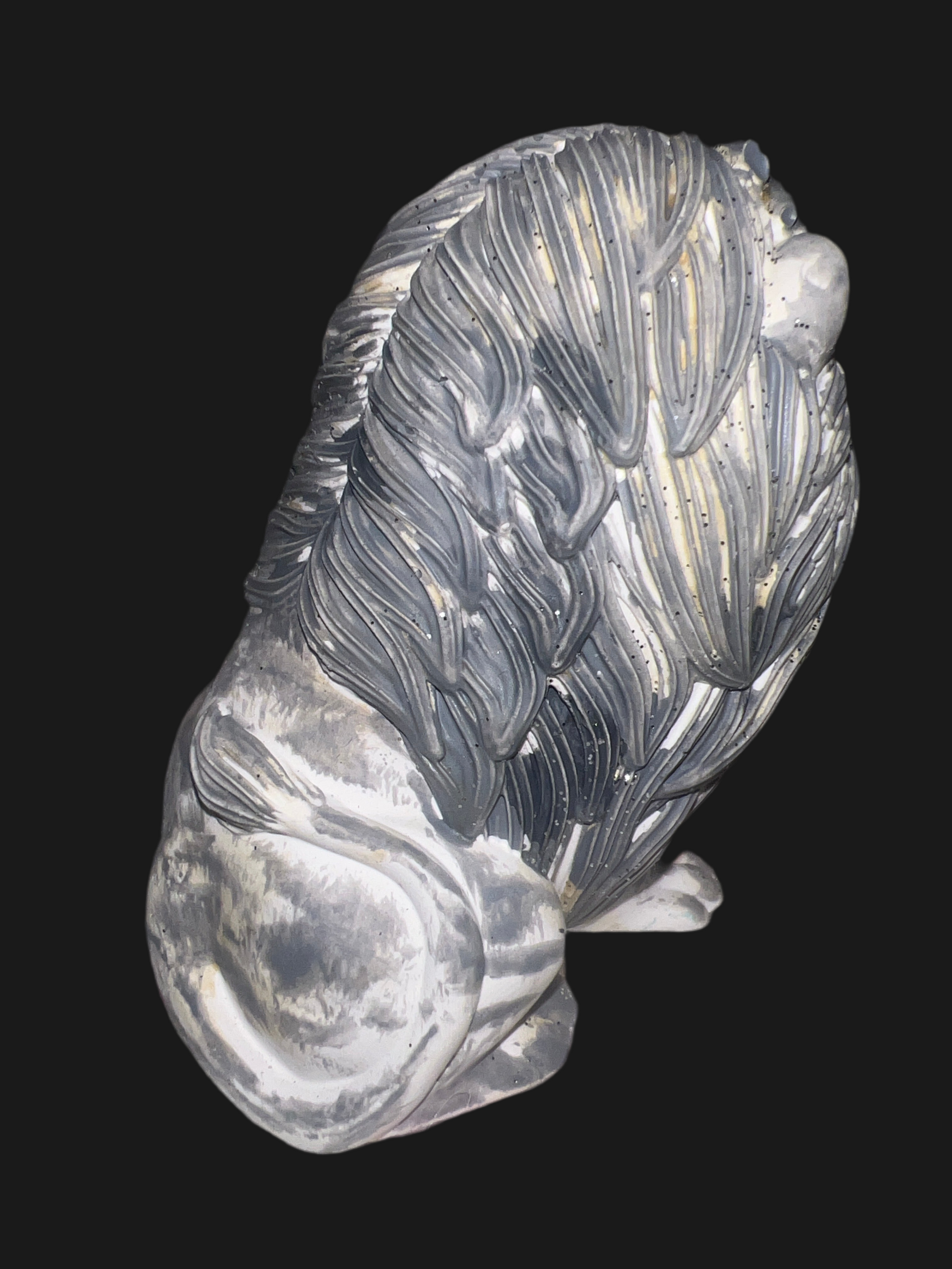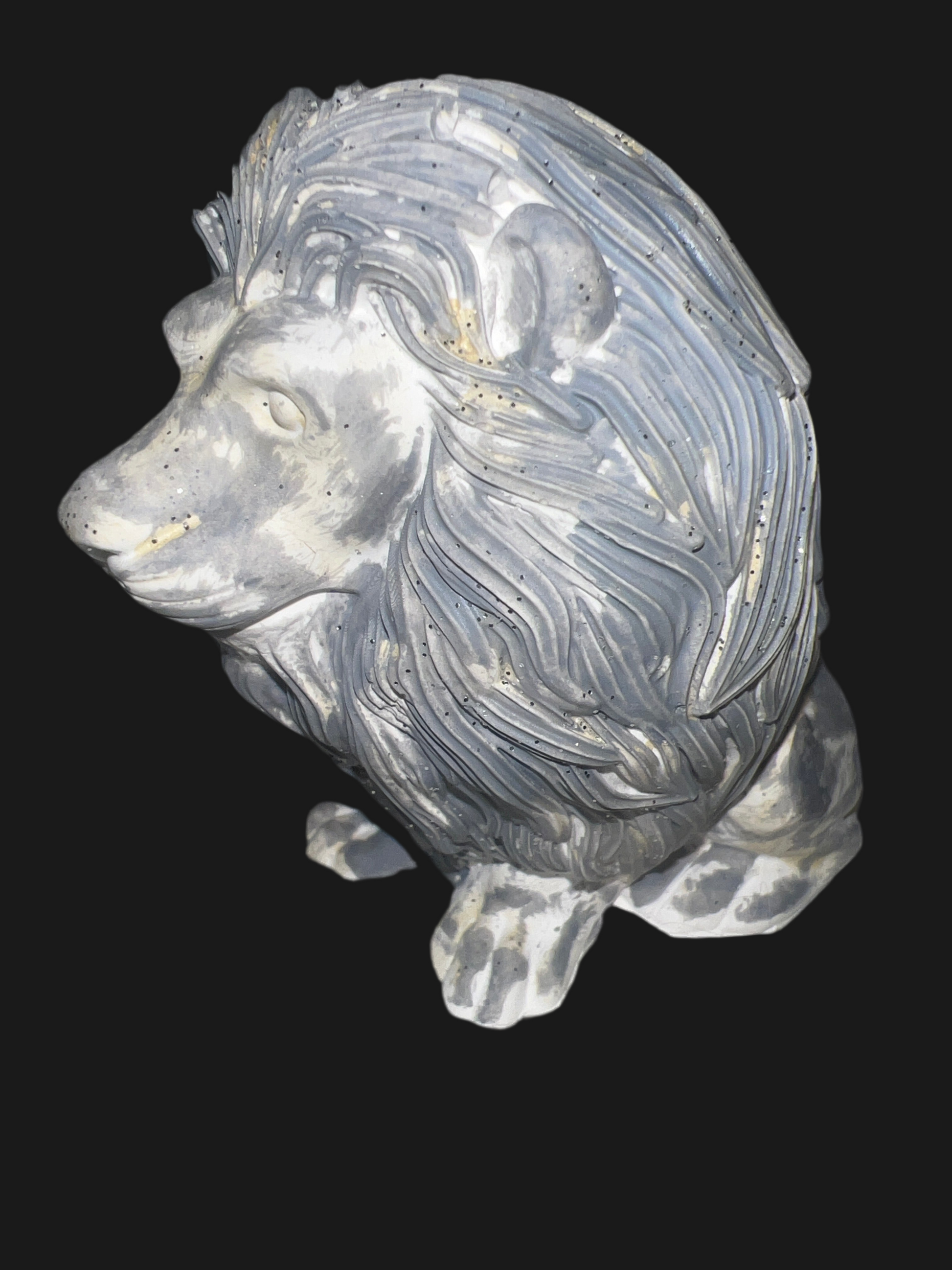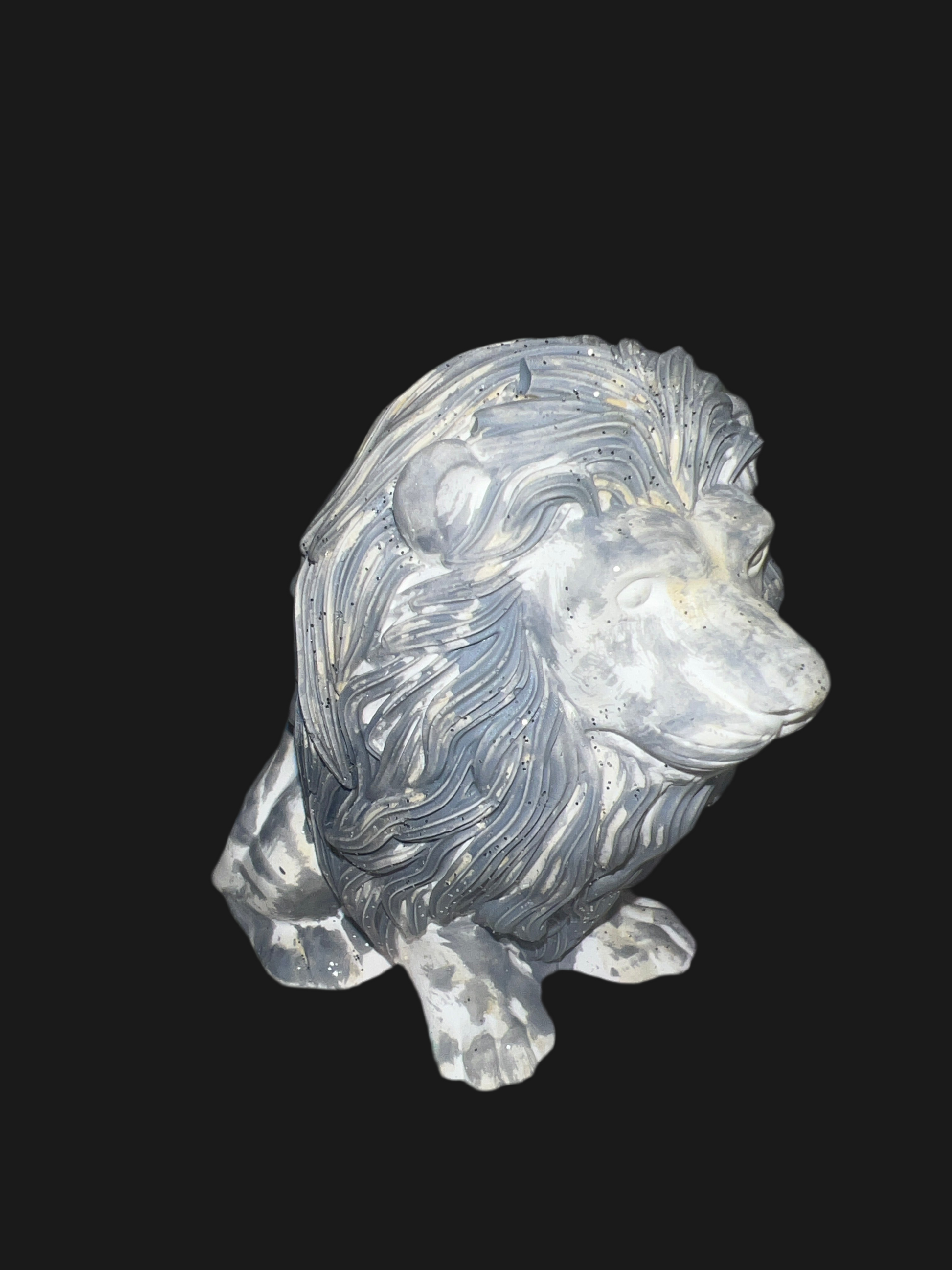 Löwe aus Keramik in der Farbe grau /weiß mit Glitzer handgefertigt „Lion“