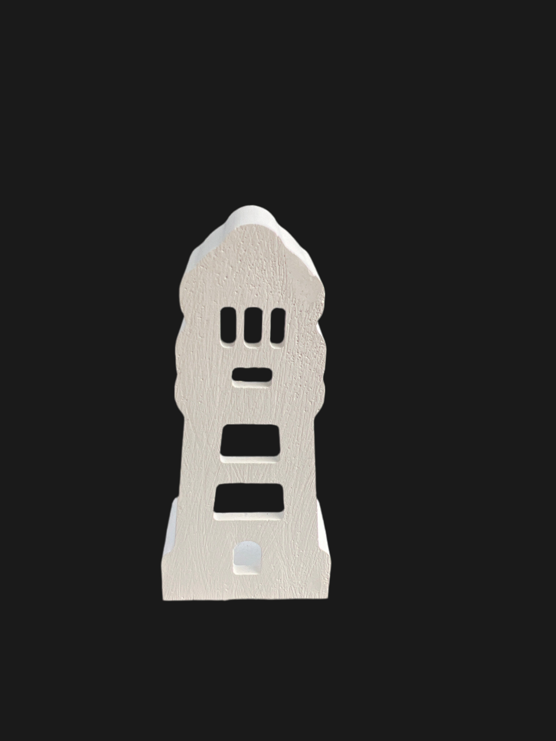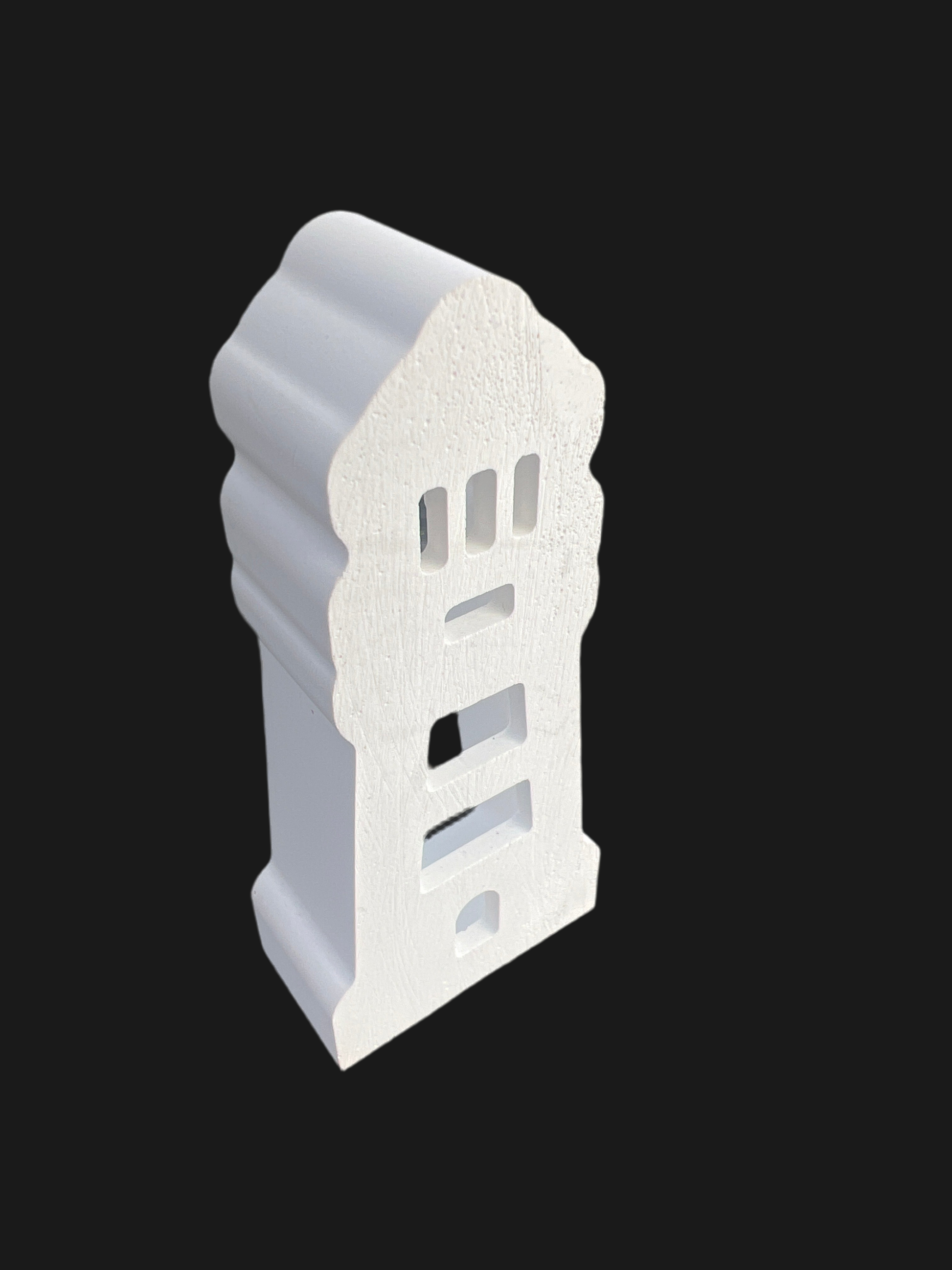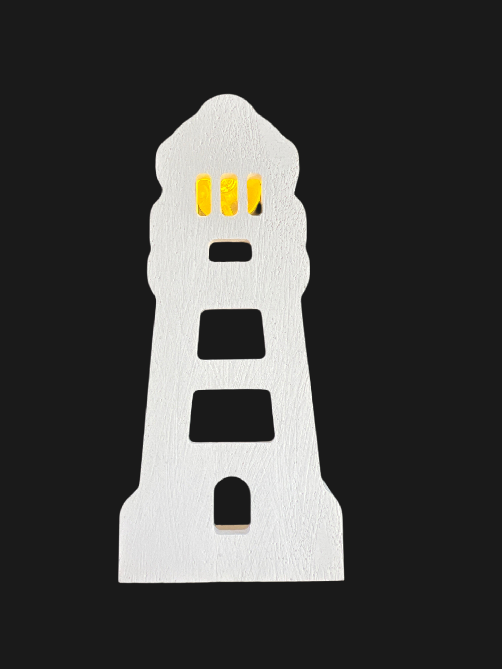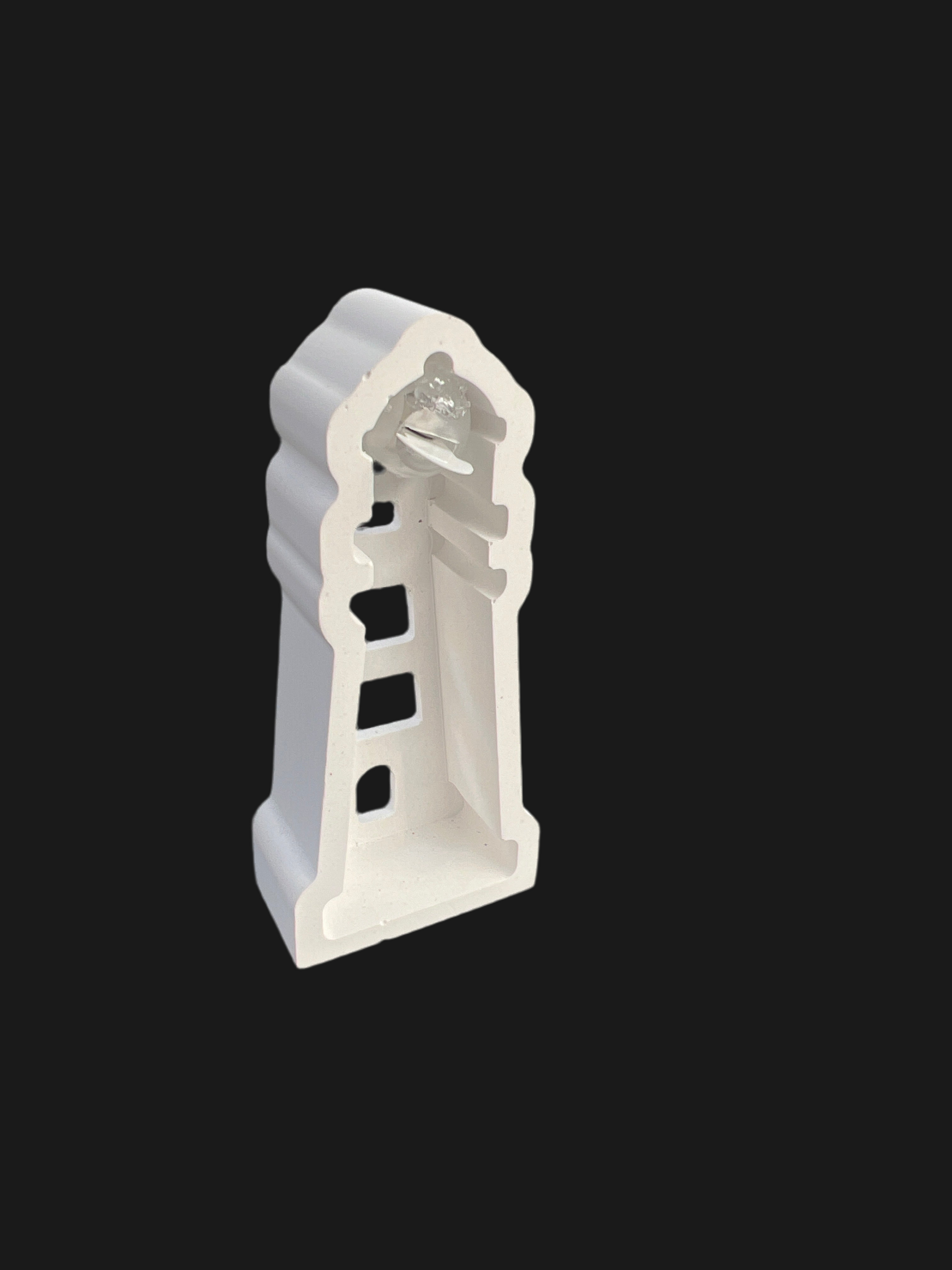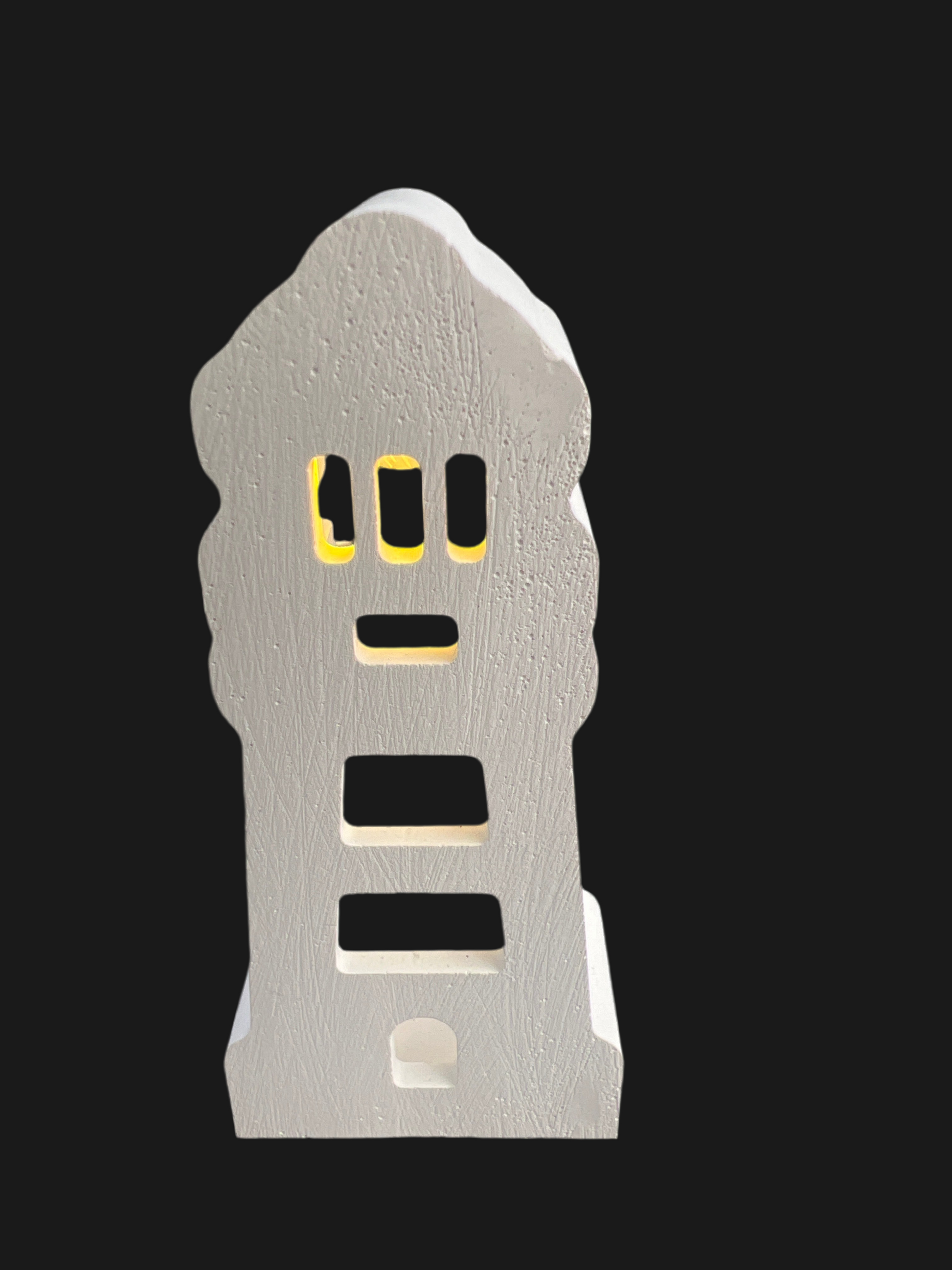 Mini - Leuchtturm aus Keramik handgefertigt in der Farbe weiß mit LED-Ballonlicht in warmweiß