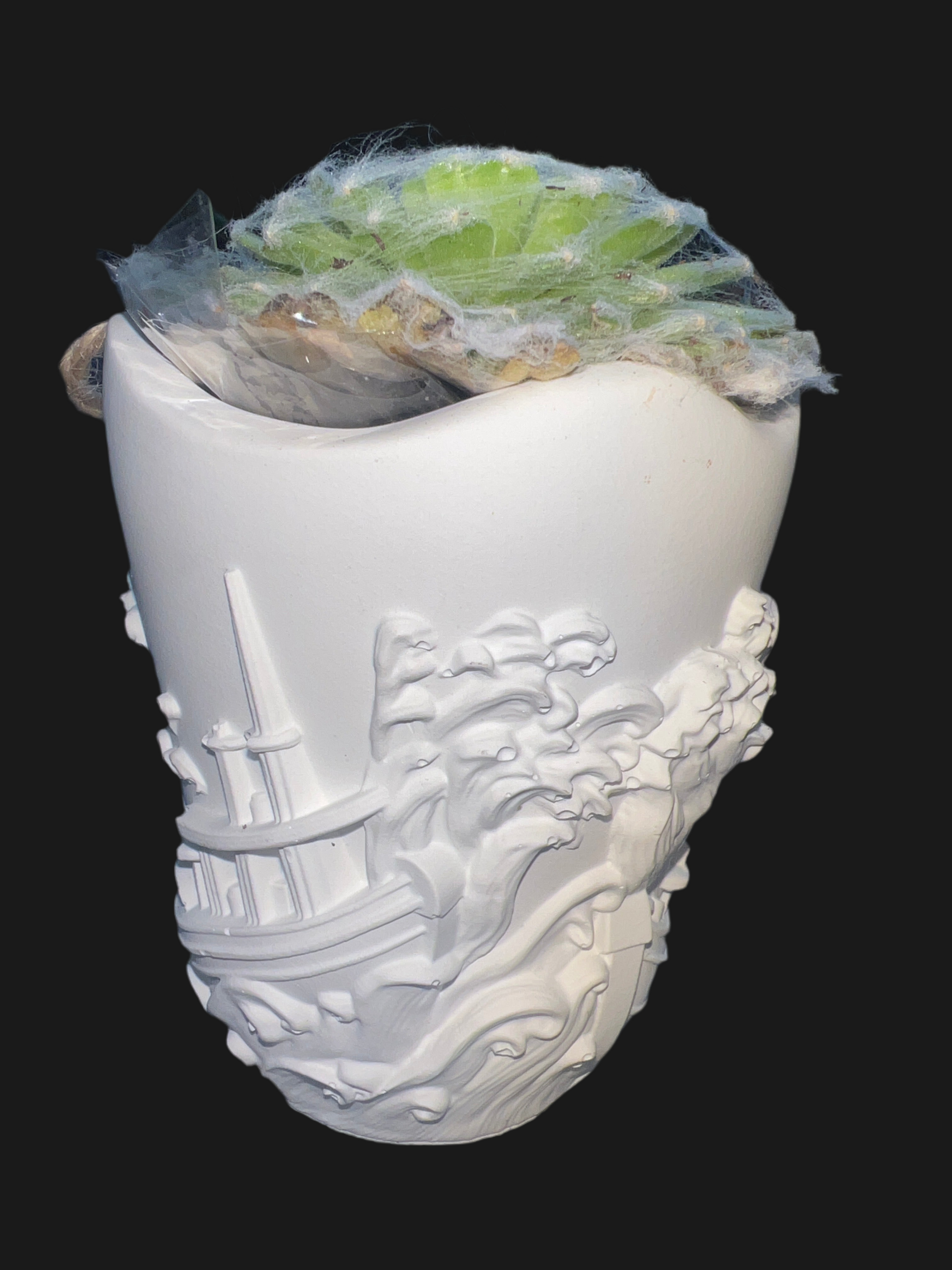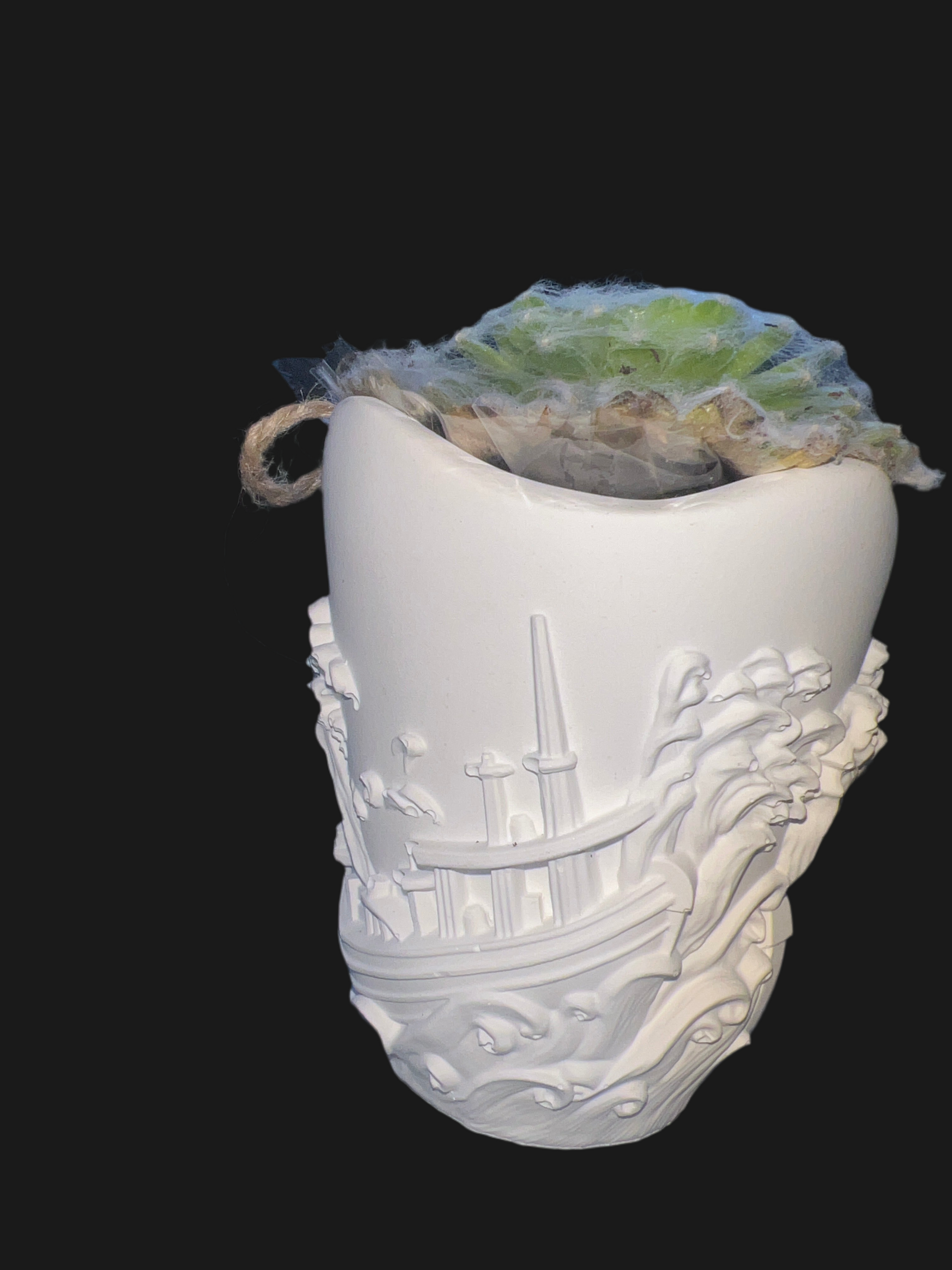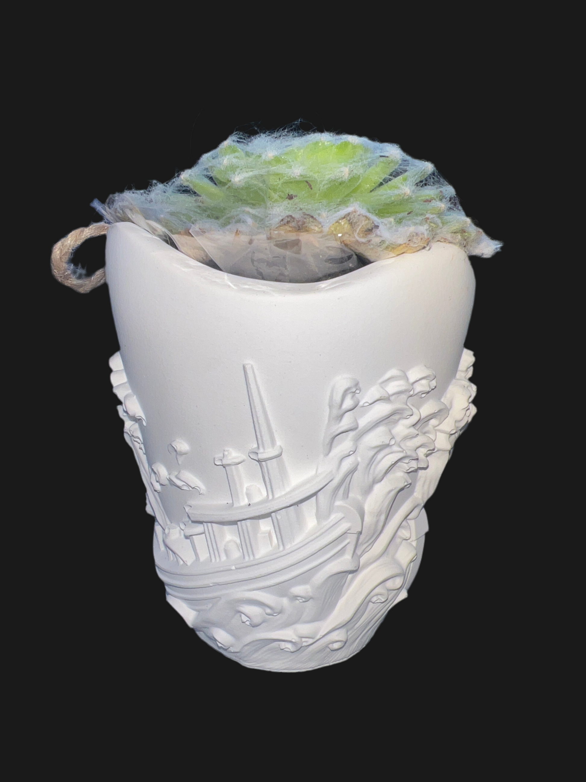 Mini - Pflamzentopf „Schiff in See“ mit Mini-Grünpflanze bepflanzt handgefertigt aus Keramik