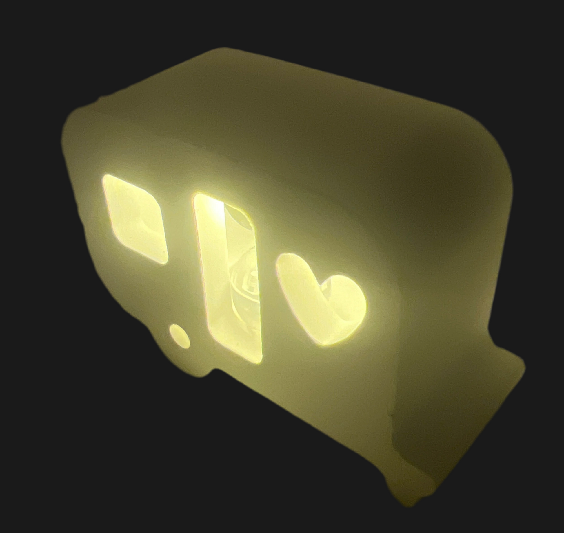 Mini - Wohnwagen „ab in den Urlaub“ # 03 mit LED - Ballonlicht in der Farbe warmweiß