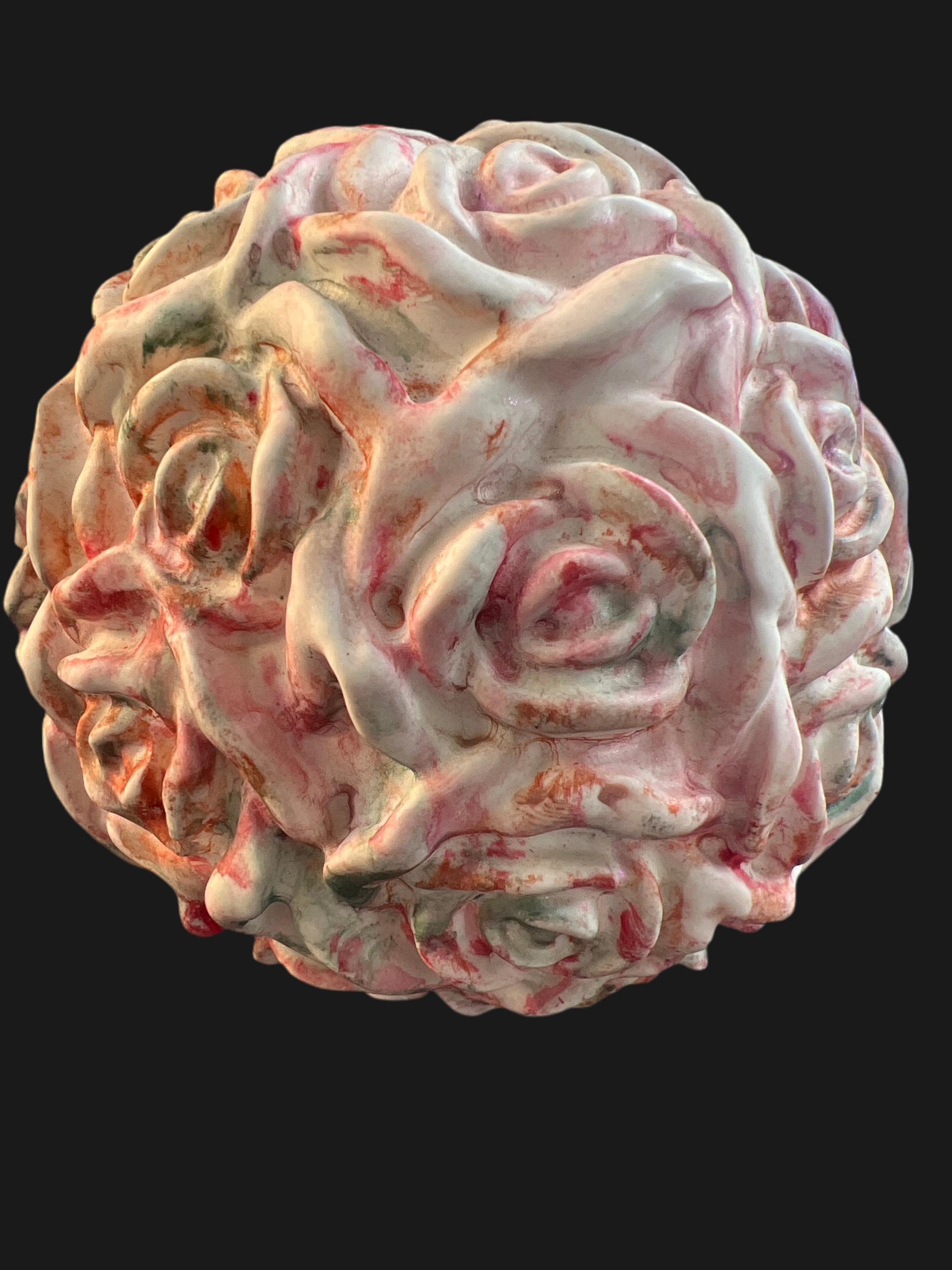 Schöne massive Rosenkugel handgefertigt aus Keramik in Rosé -weiß gehalten