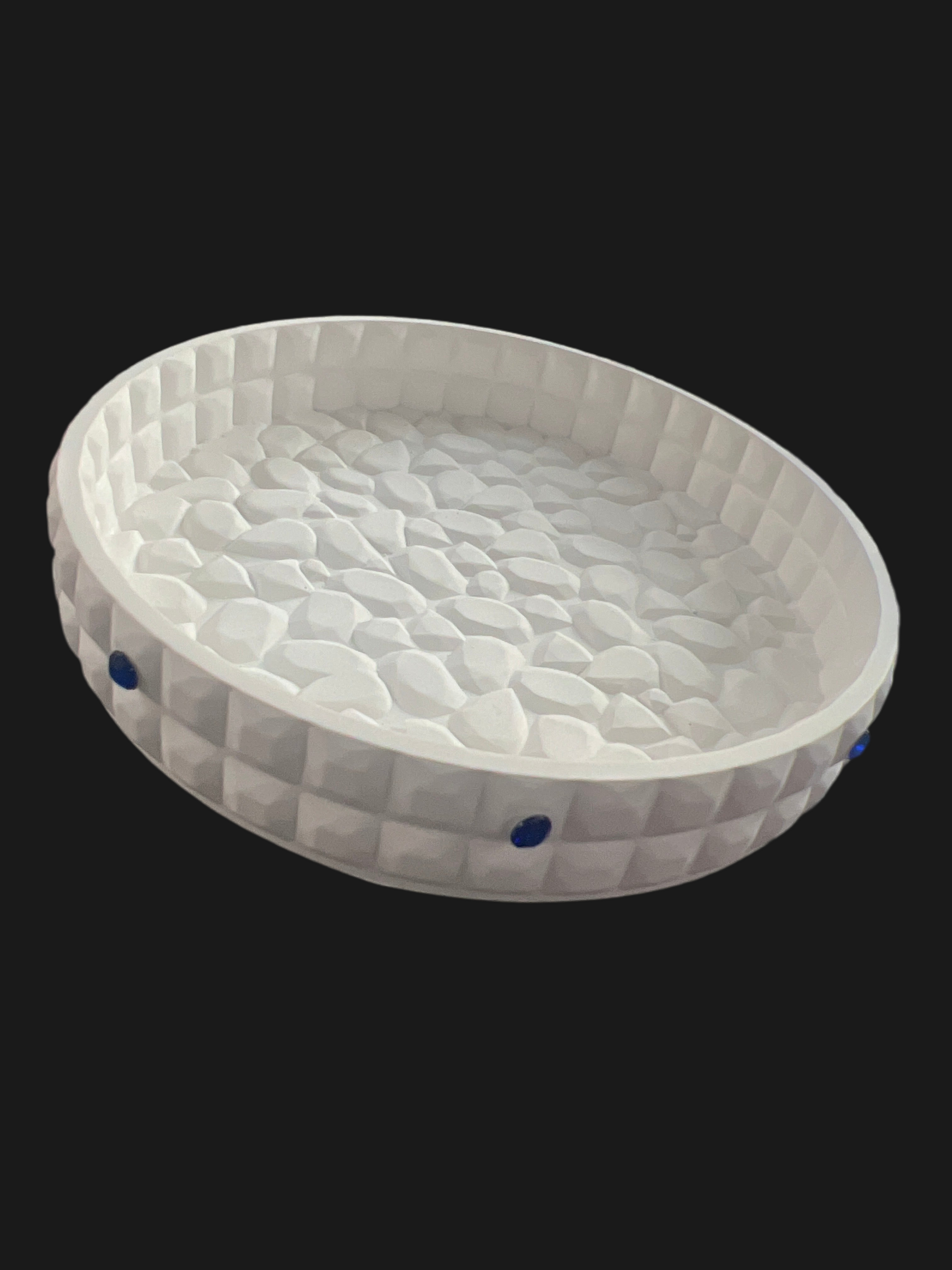 Runde Ablage Schale Relief Diamant Struktur aus keramischer Masse handgefertigt