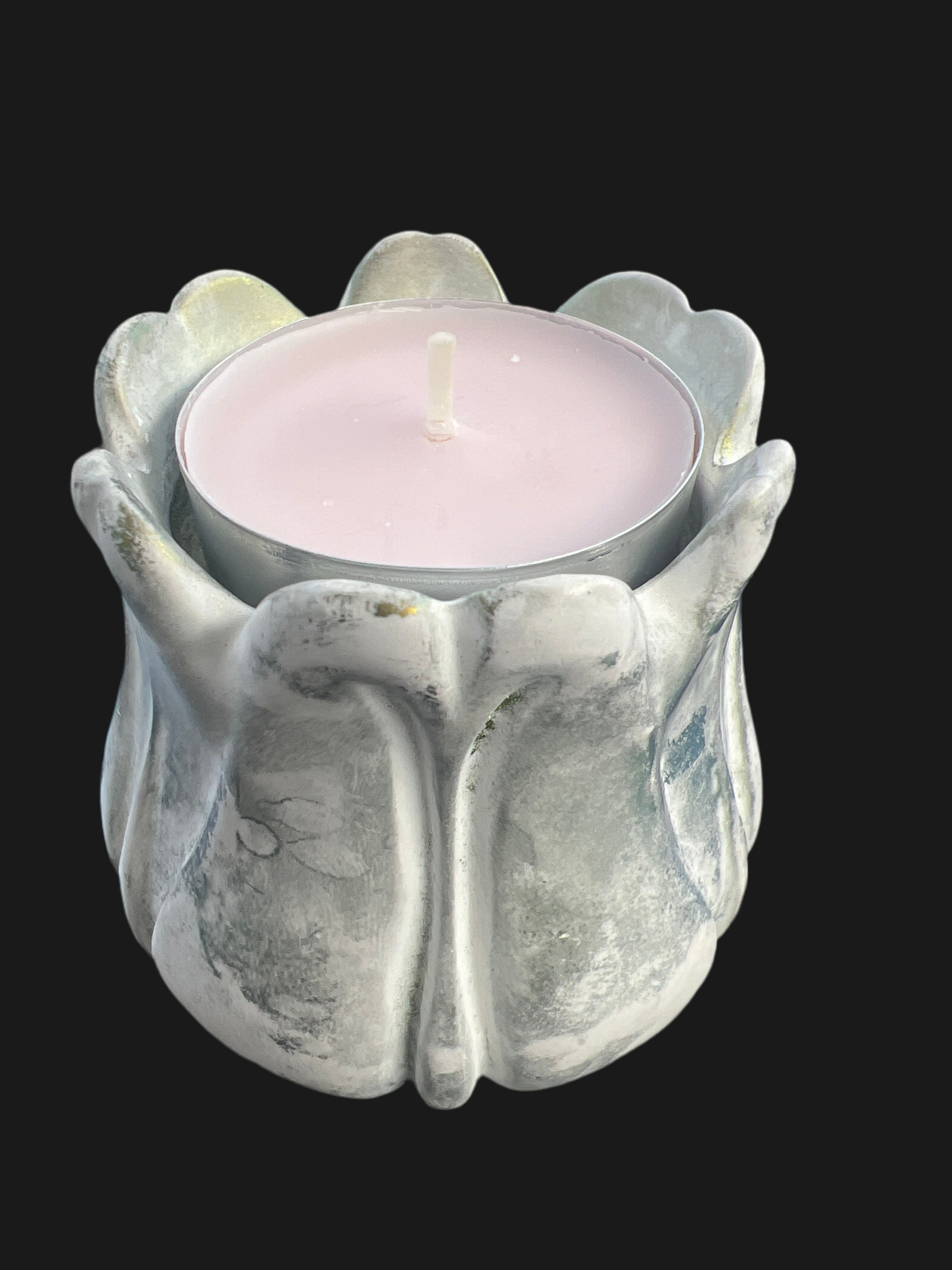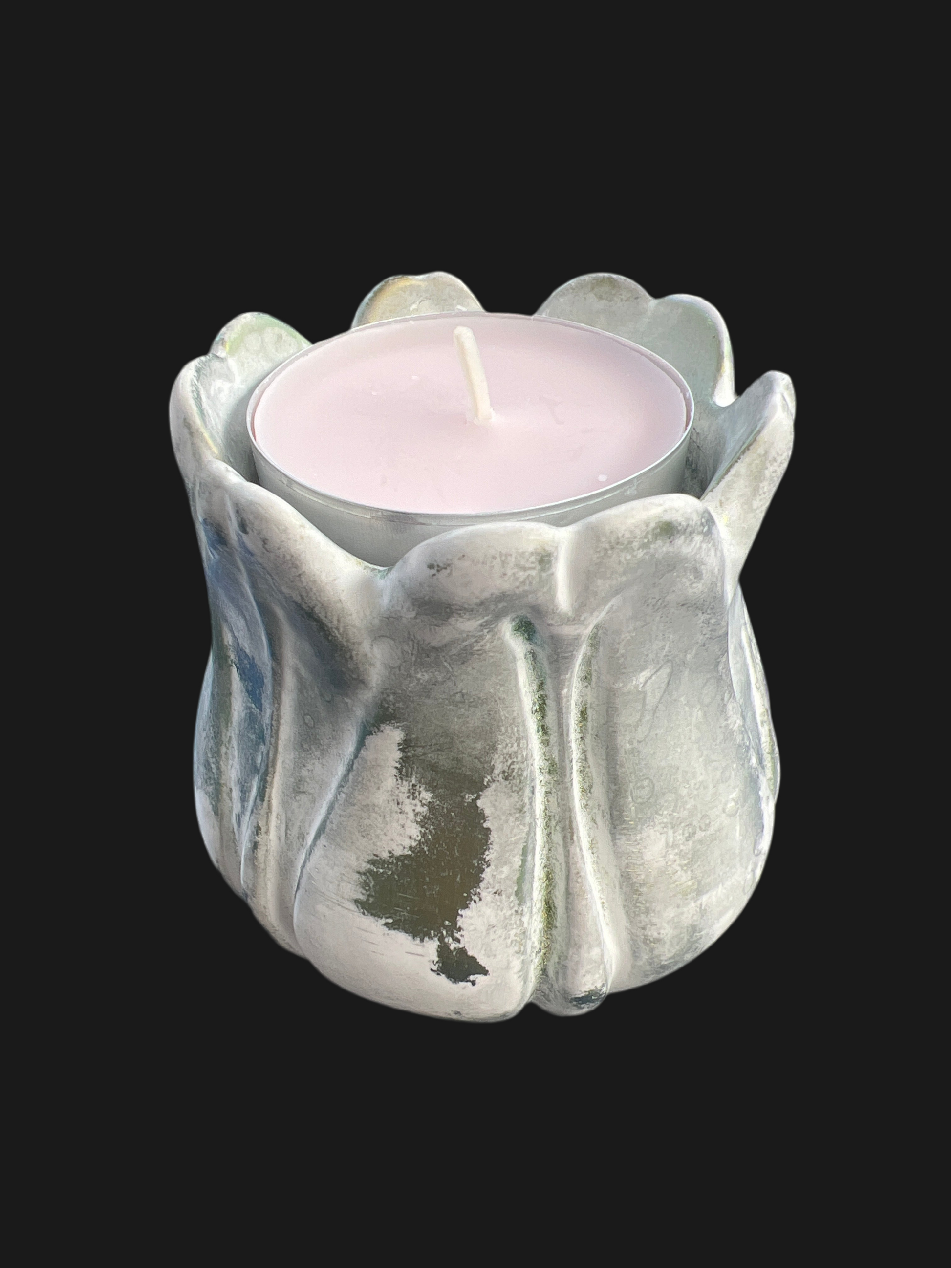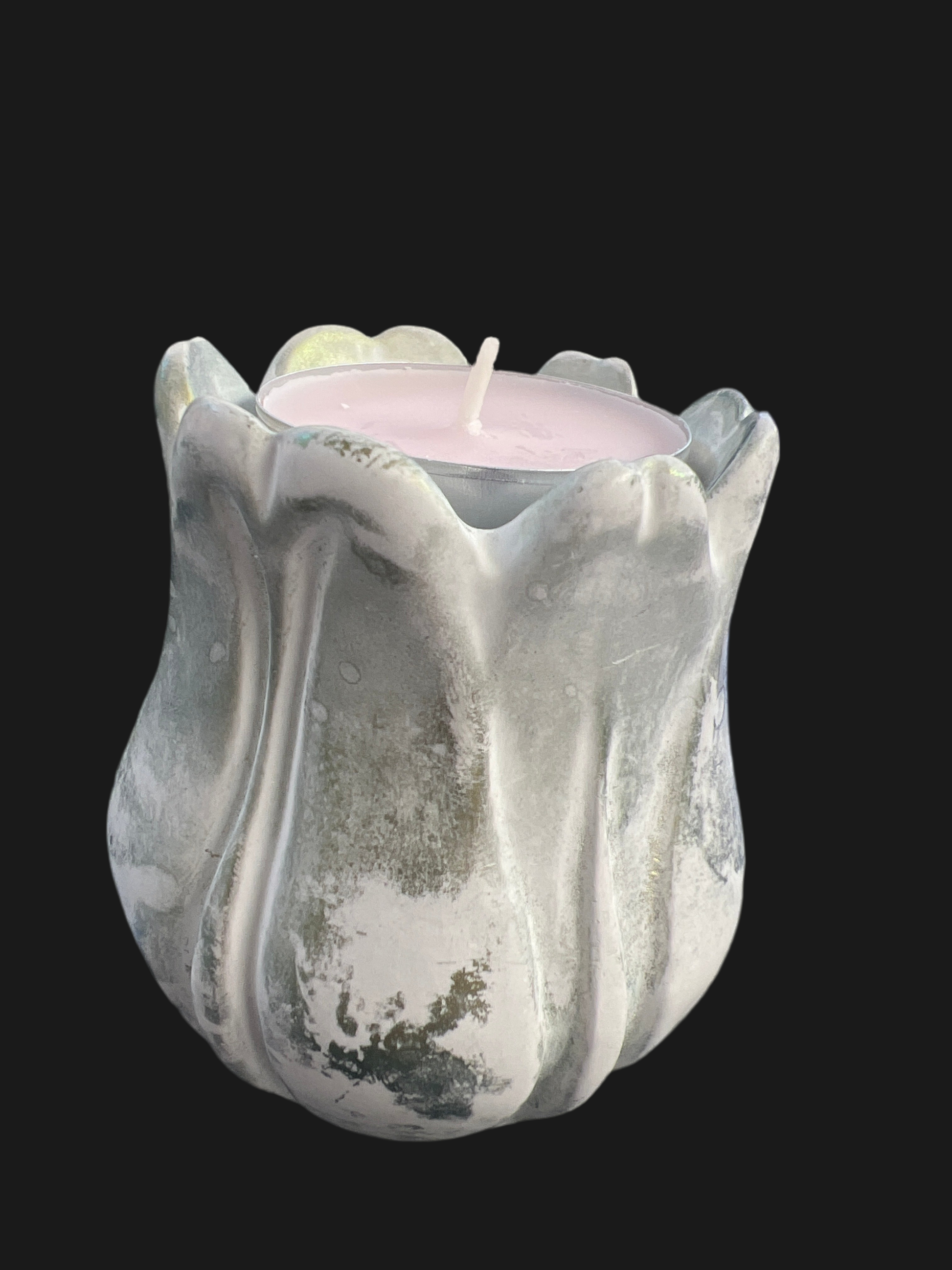 Teelichthalter „Tulpenkelch“ in der Farbe weiß - golden *shabby* handgefertigt aus Keramik