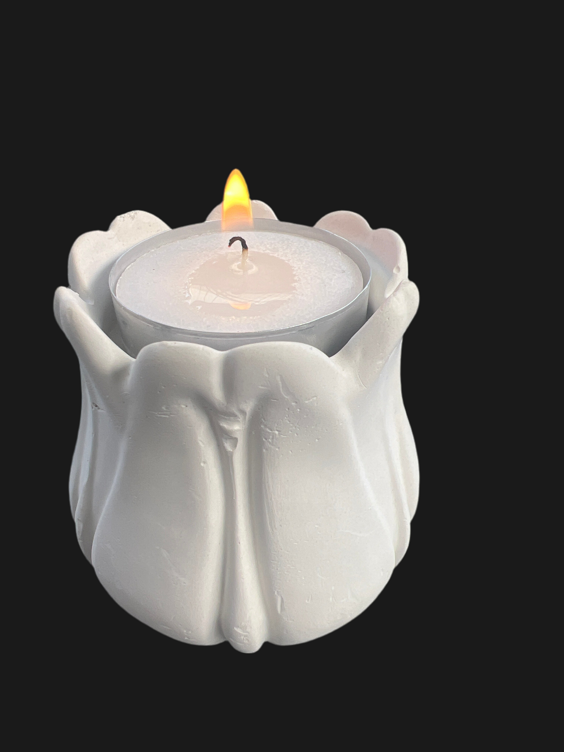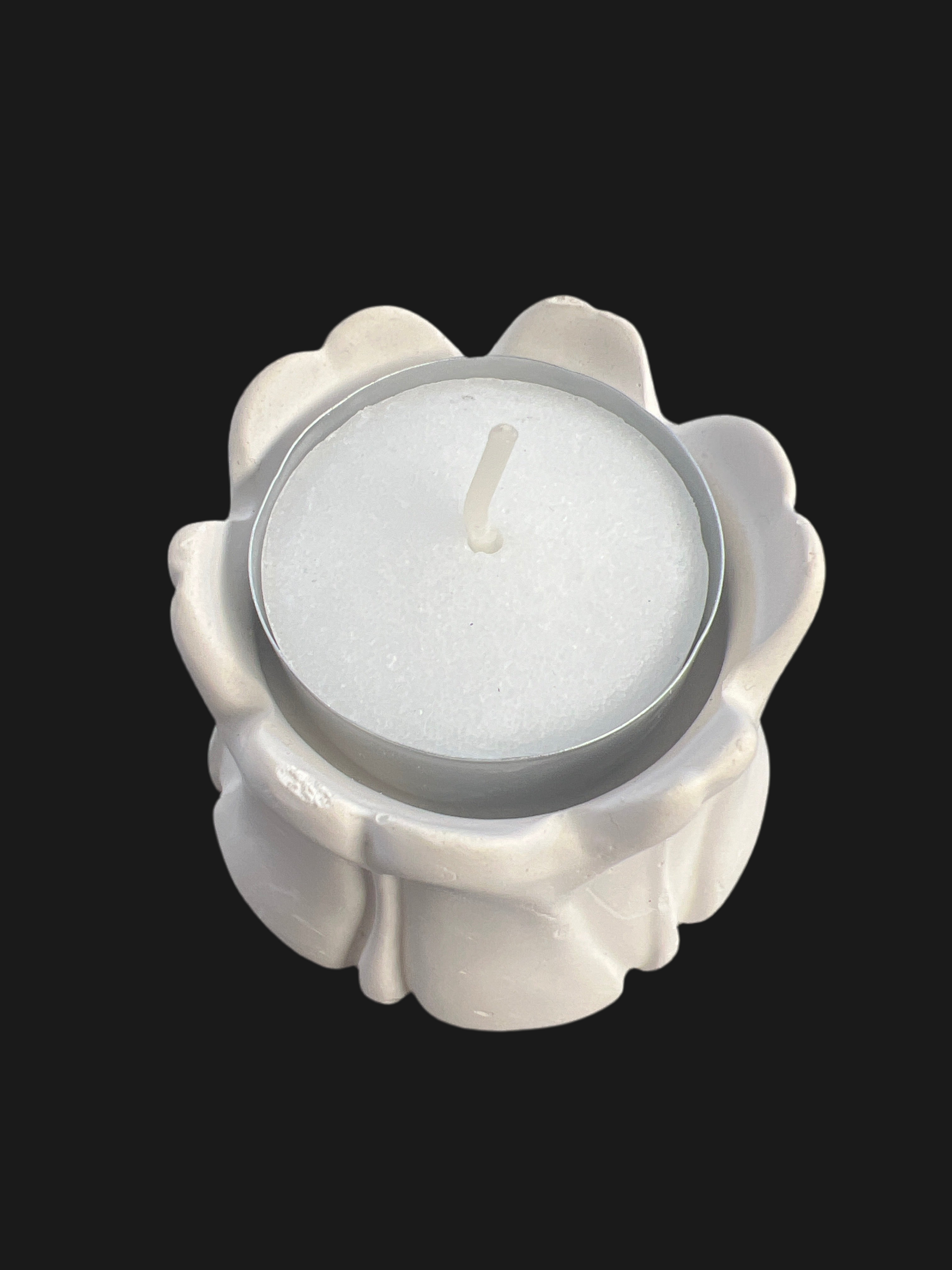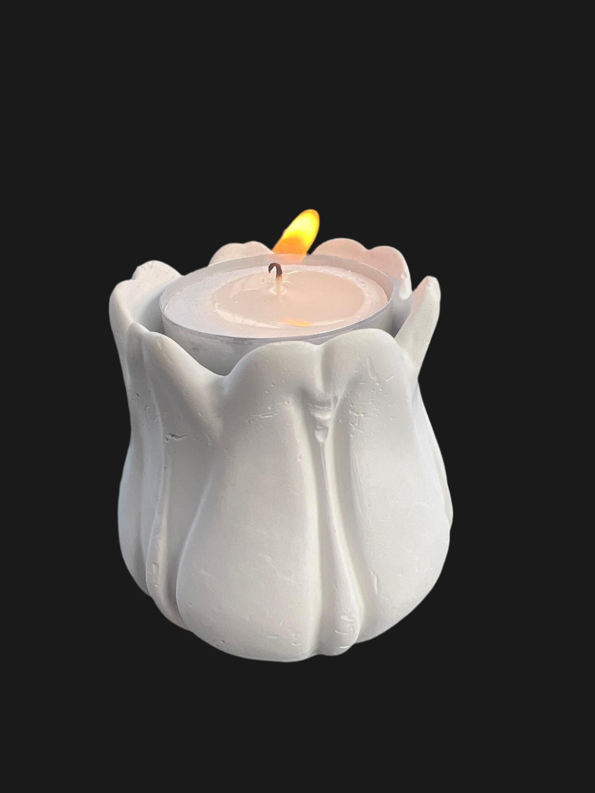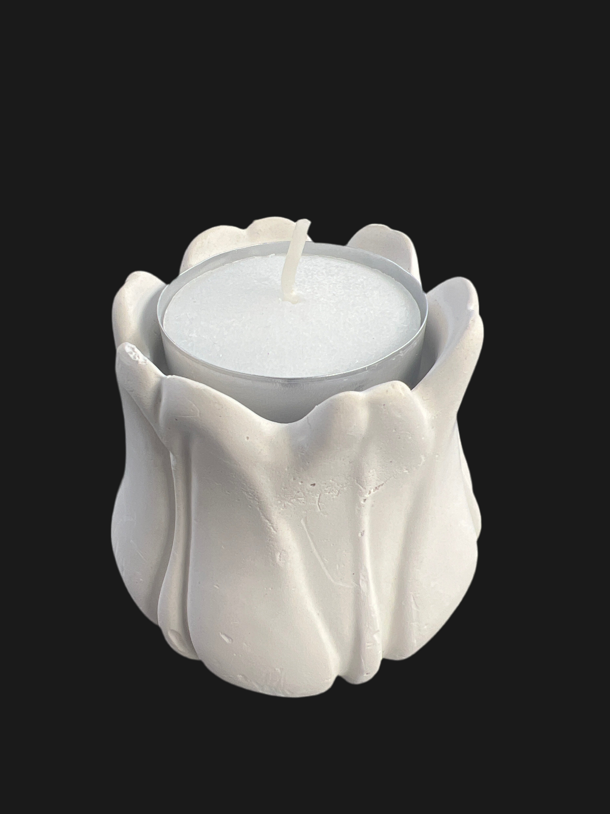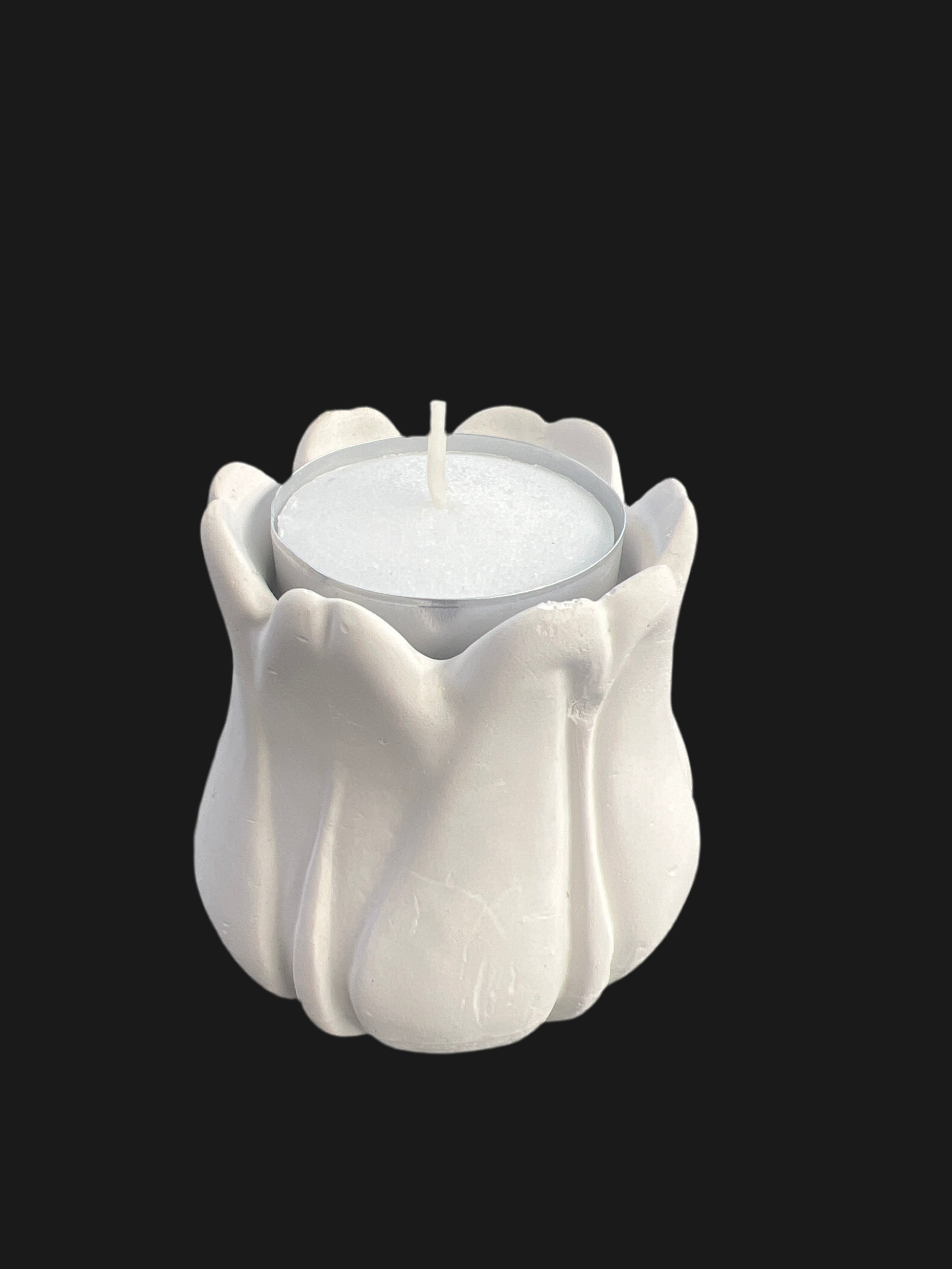 Teelichthalter „Tulpenkelch“ in der Farbe weiß handgefertigt aus Keramik