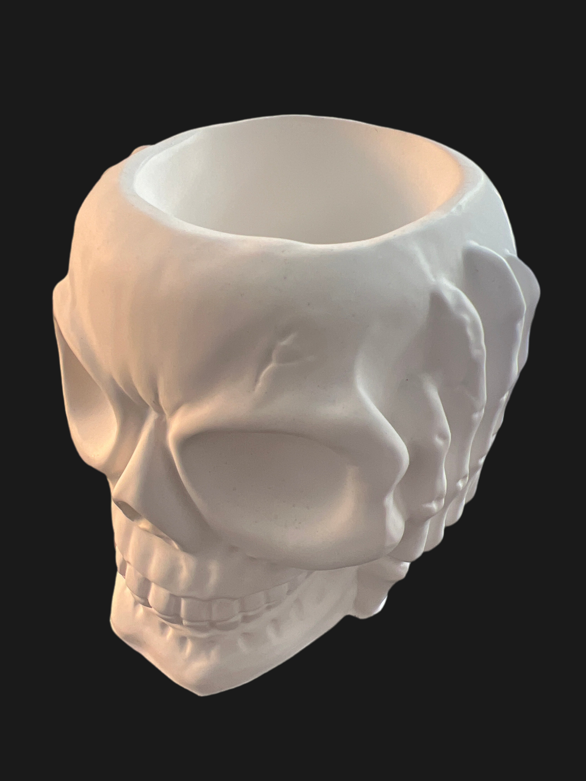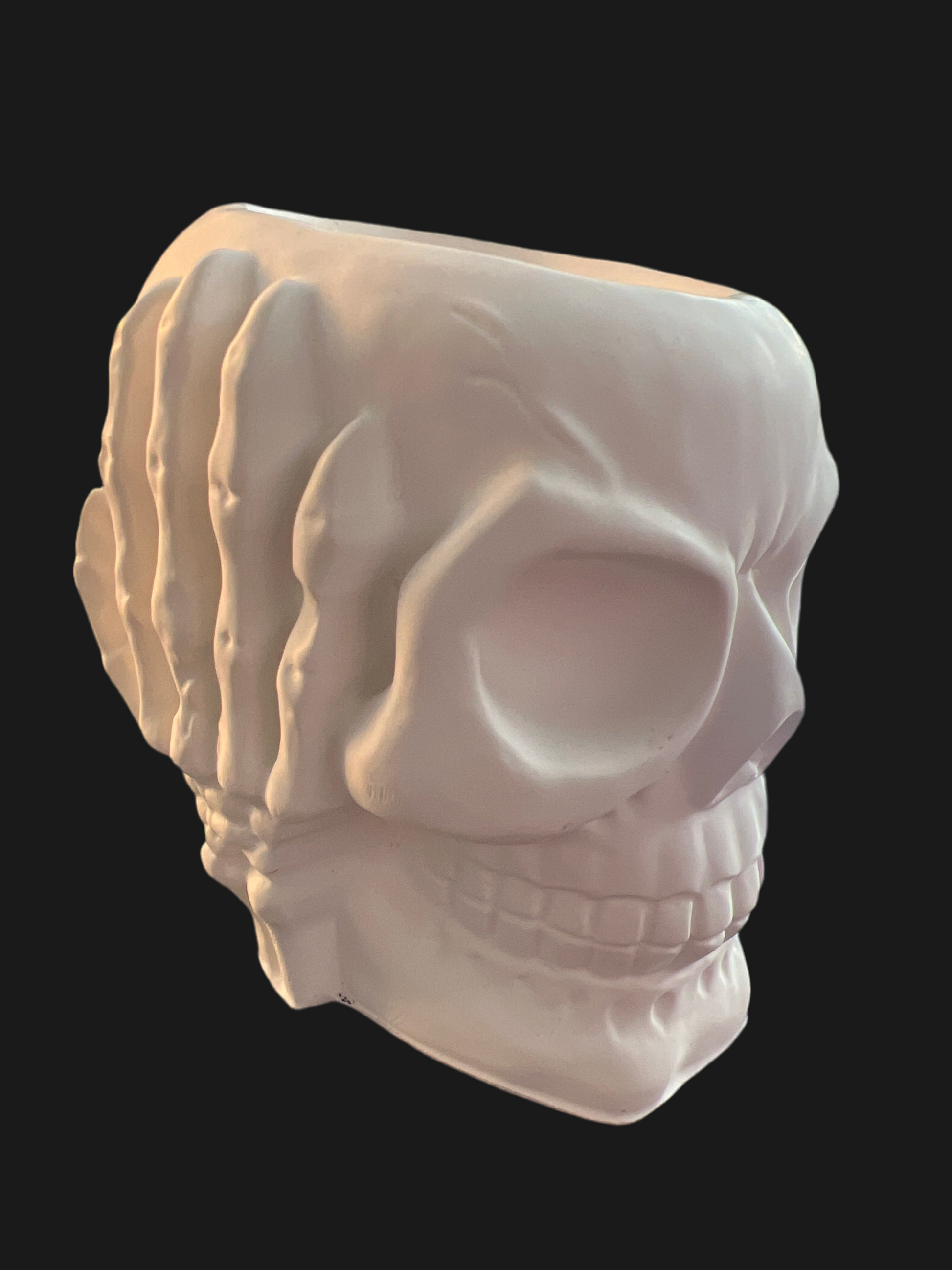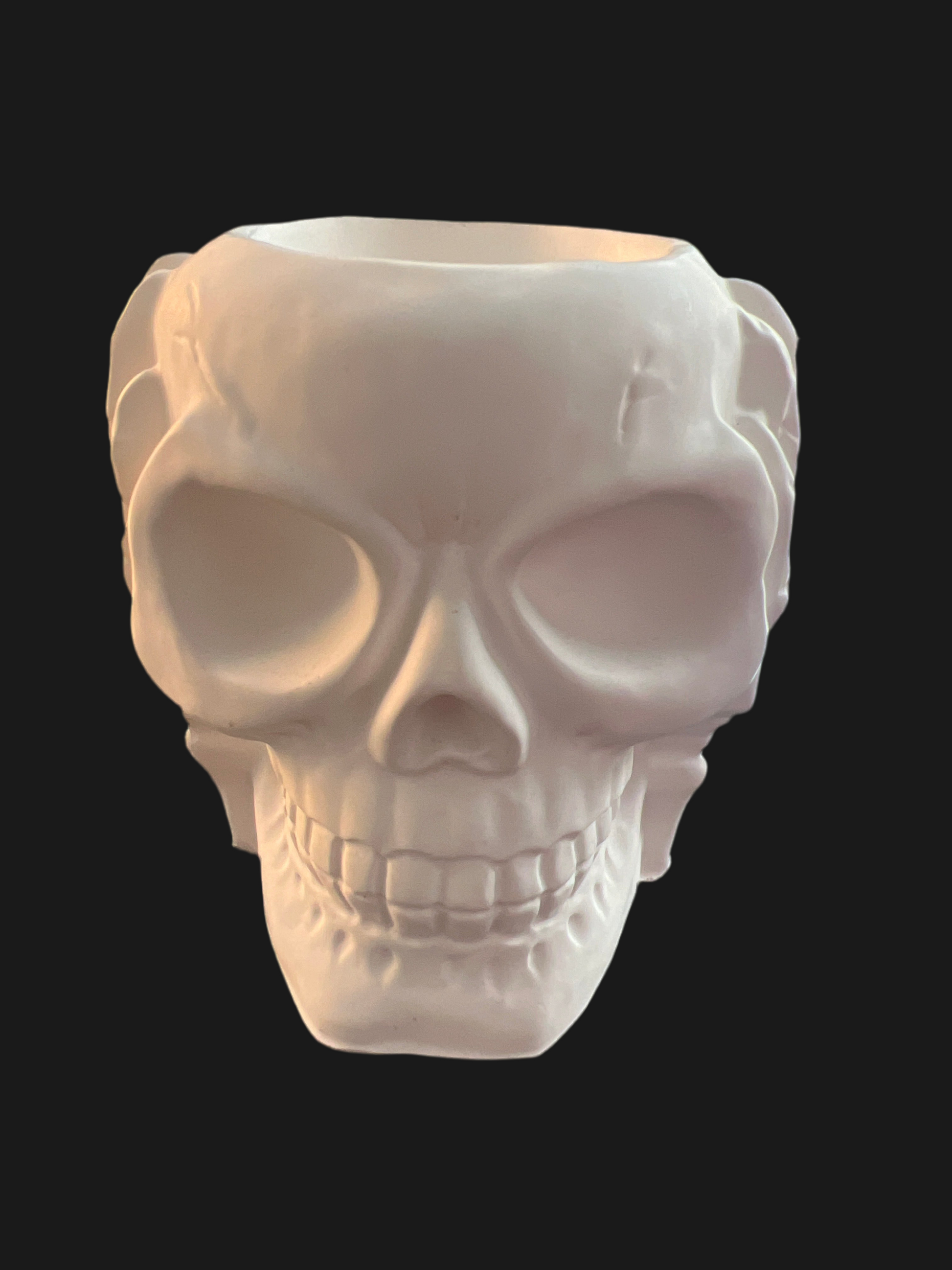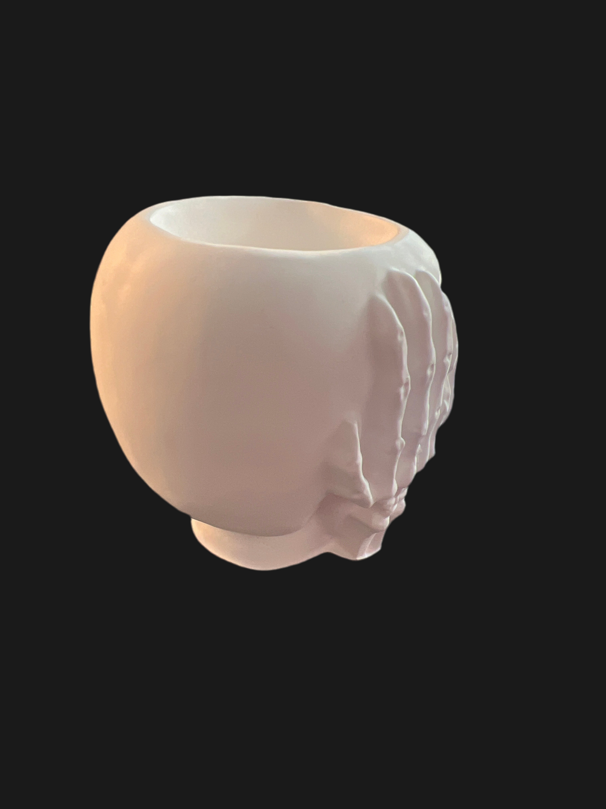 Totenkopf Schädel „nichts hören“ handgefertigt in der Farbe weiß aus Keramik mit LED-Teelicht warmweiß