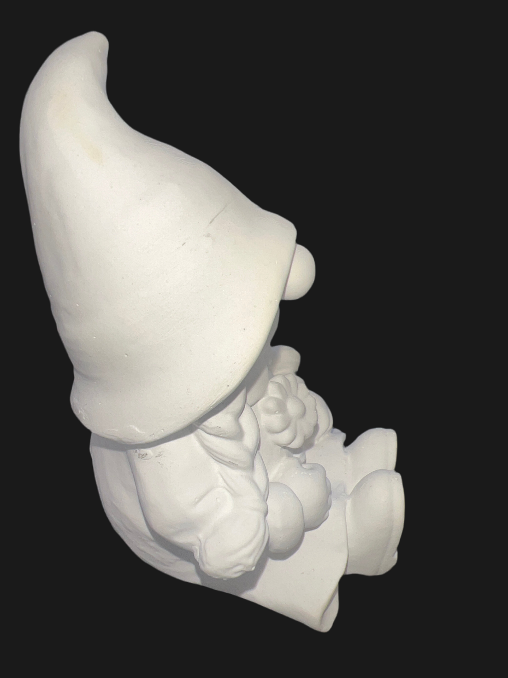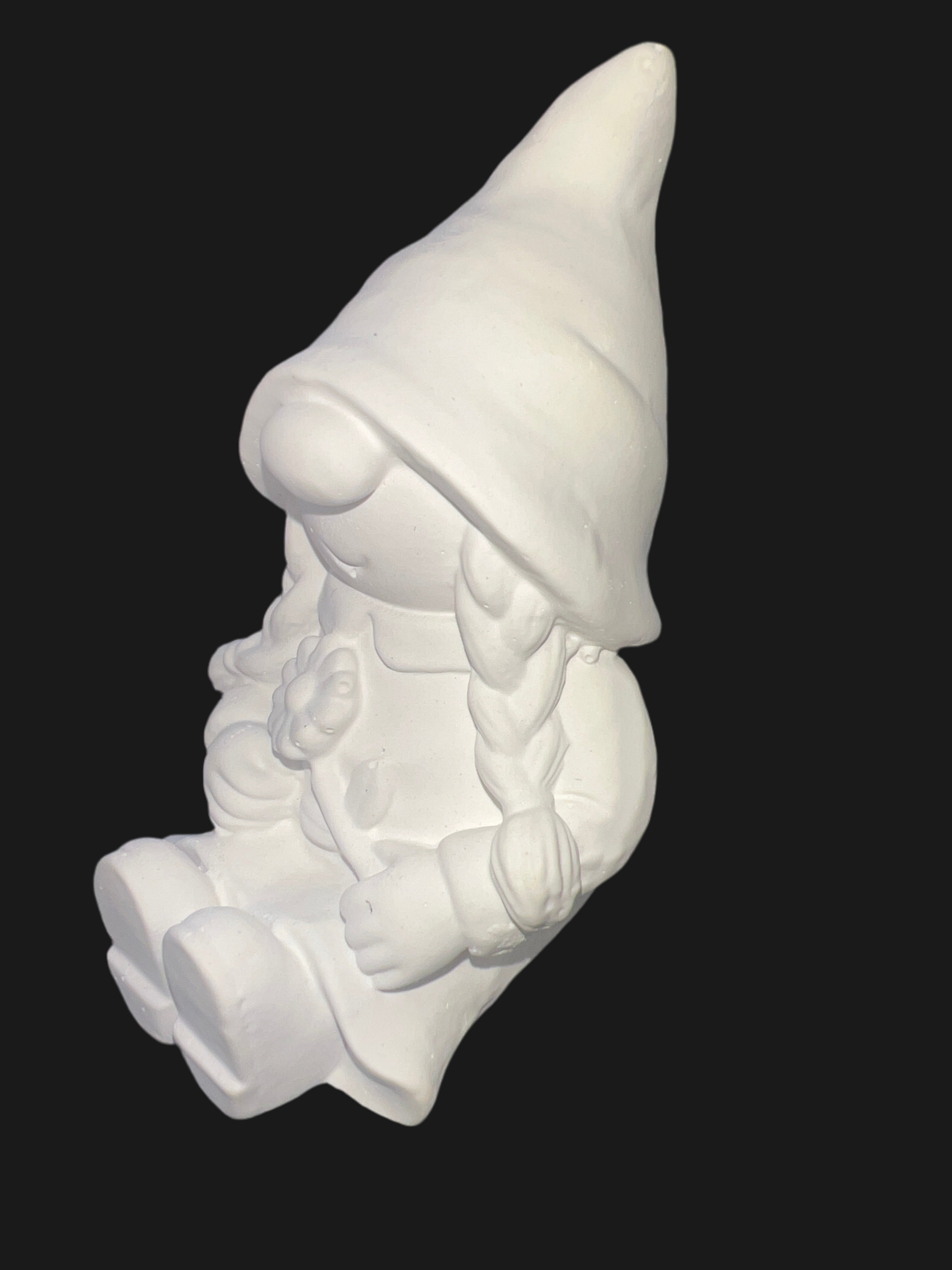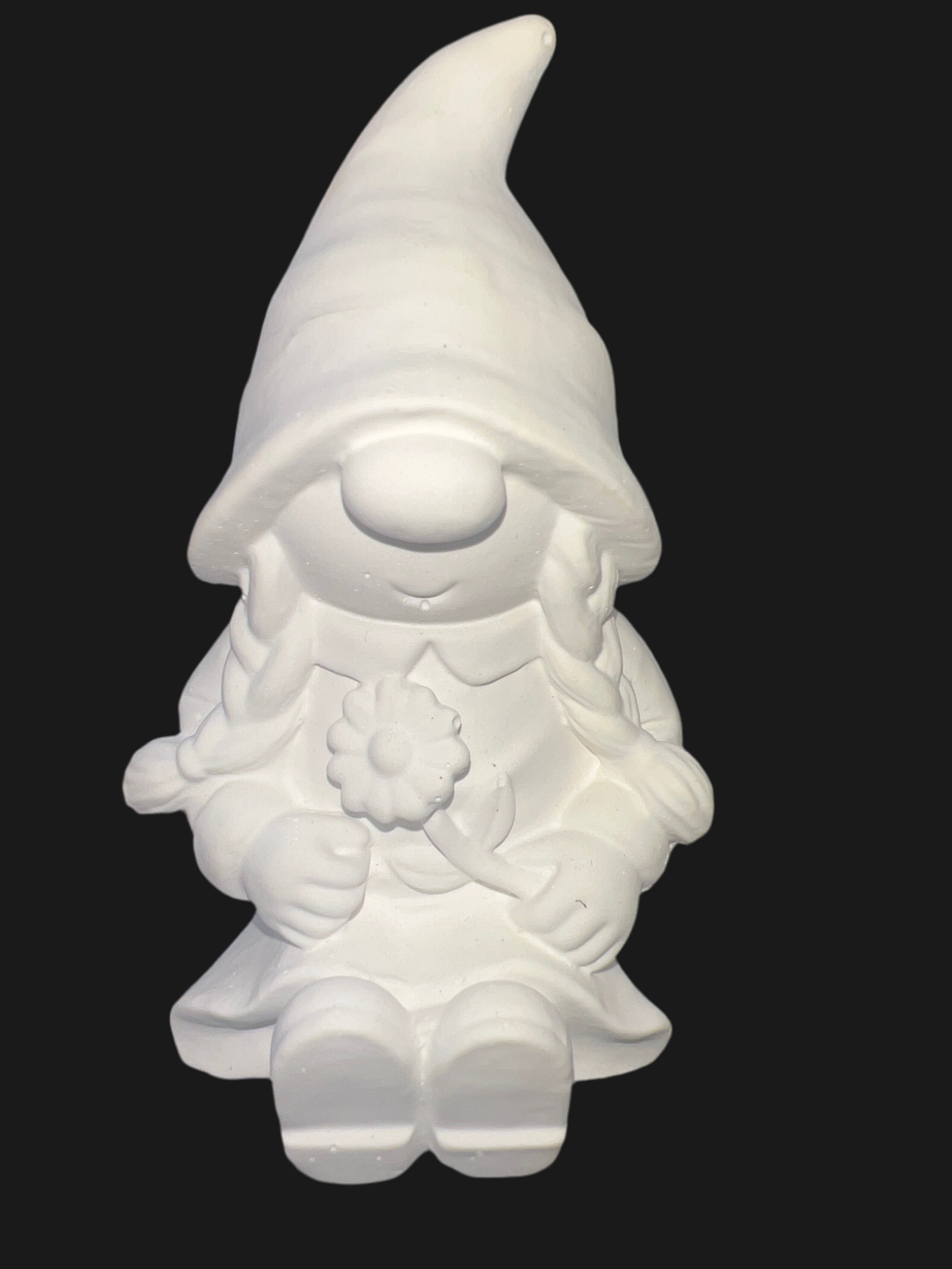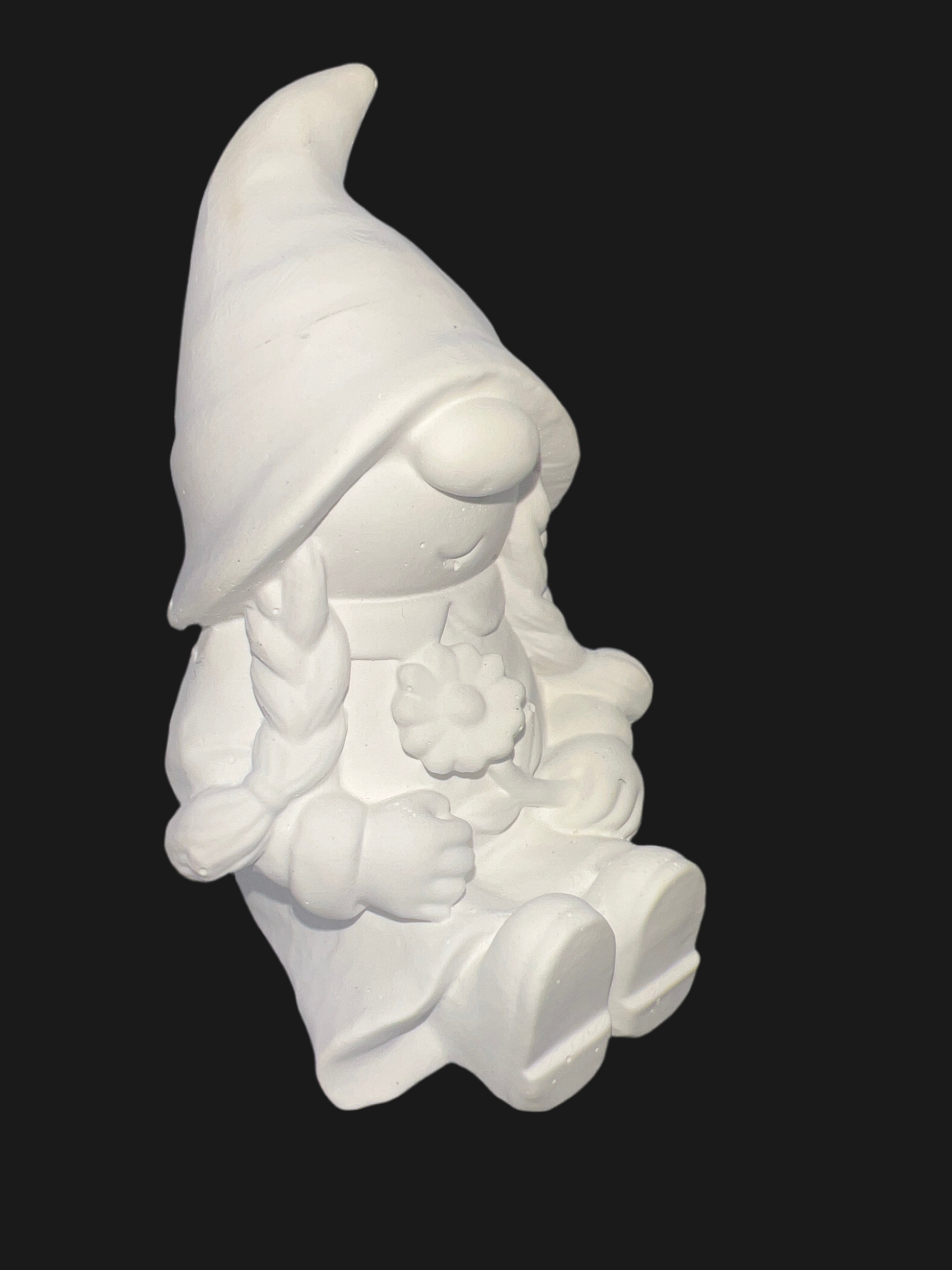 Wichtel Zwerg „Mädchen mit Blume in Hand“ aus Keramik handgefertigt in der Farbe weiß